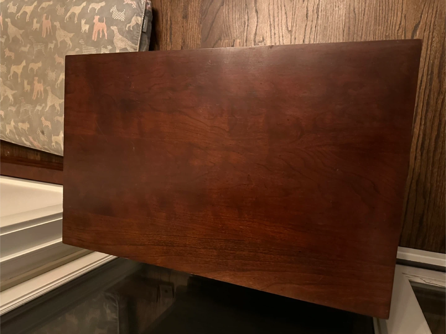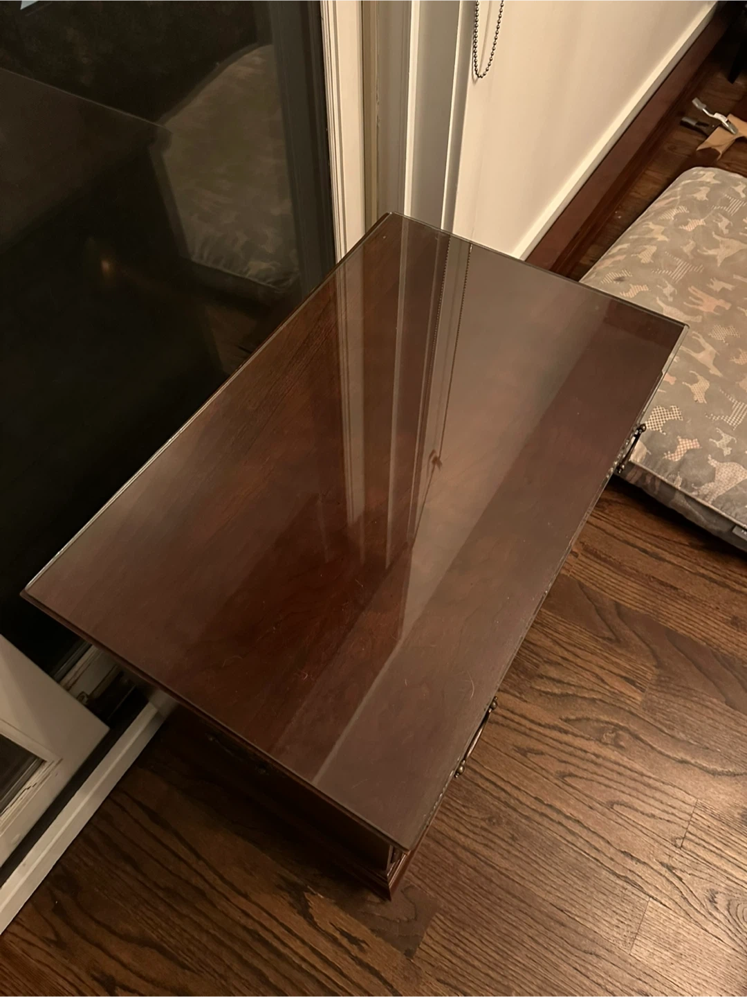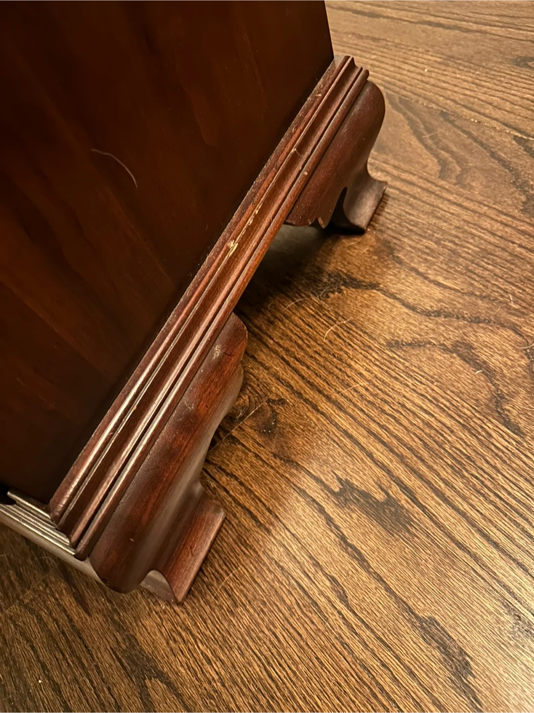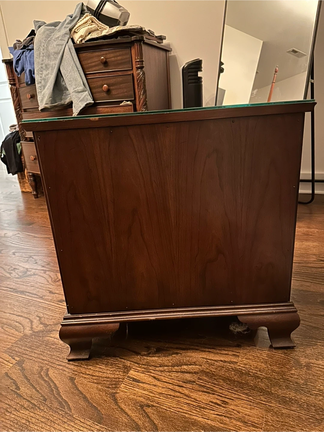 Beautiful solid wood nightstand with 4 drawers in a traditional colonial style. Classic and high quality, in excellent condition. The top has been protected with a custom glass surface, so it has no marks or stains. This was my grandmother’s and I’m only parting with it because there’s only one and we wanted a set for our bedroom. The four drawers are great storage next to the bed. 15” deep x 24” wide x 24” high Ukrainian Village near Augusta and Western. Pick up only. Cash (exact change), Venmo, or Zelle.