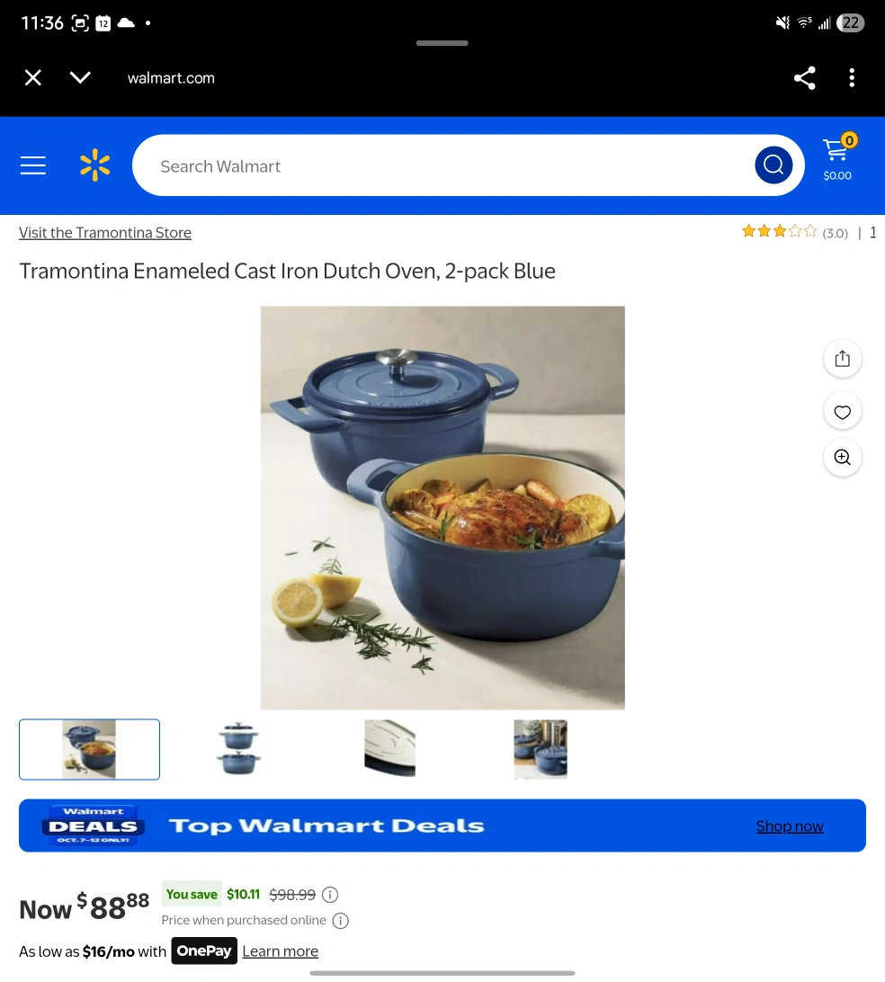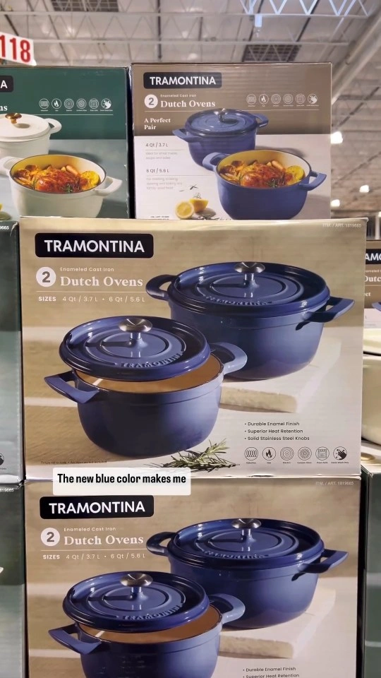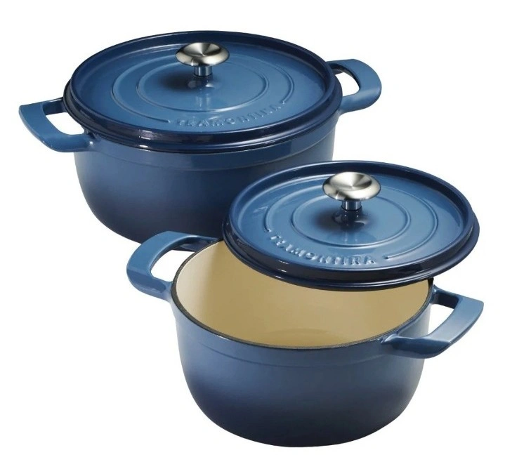 I'm selling a Tramontina Enamel Cast Iron Dutch Oven 2-pack in blue! It includes two dutch ovens, one 4 qt / 3.7 L and one 6 qt / 5.6 L. They have a durable enamel finish and superior heat retention. The knobs are solid stainless steel! I didn't open the box yet. They are new!