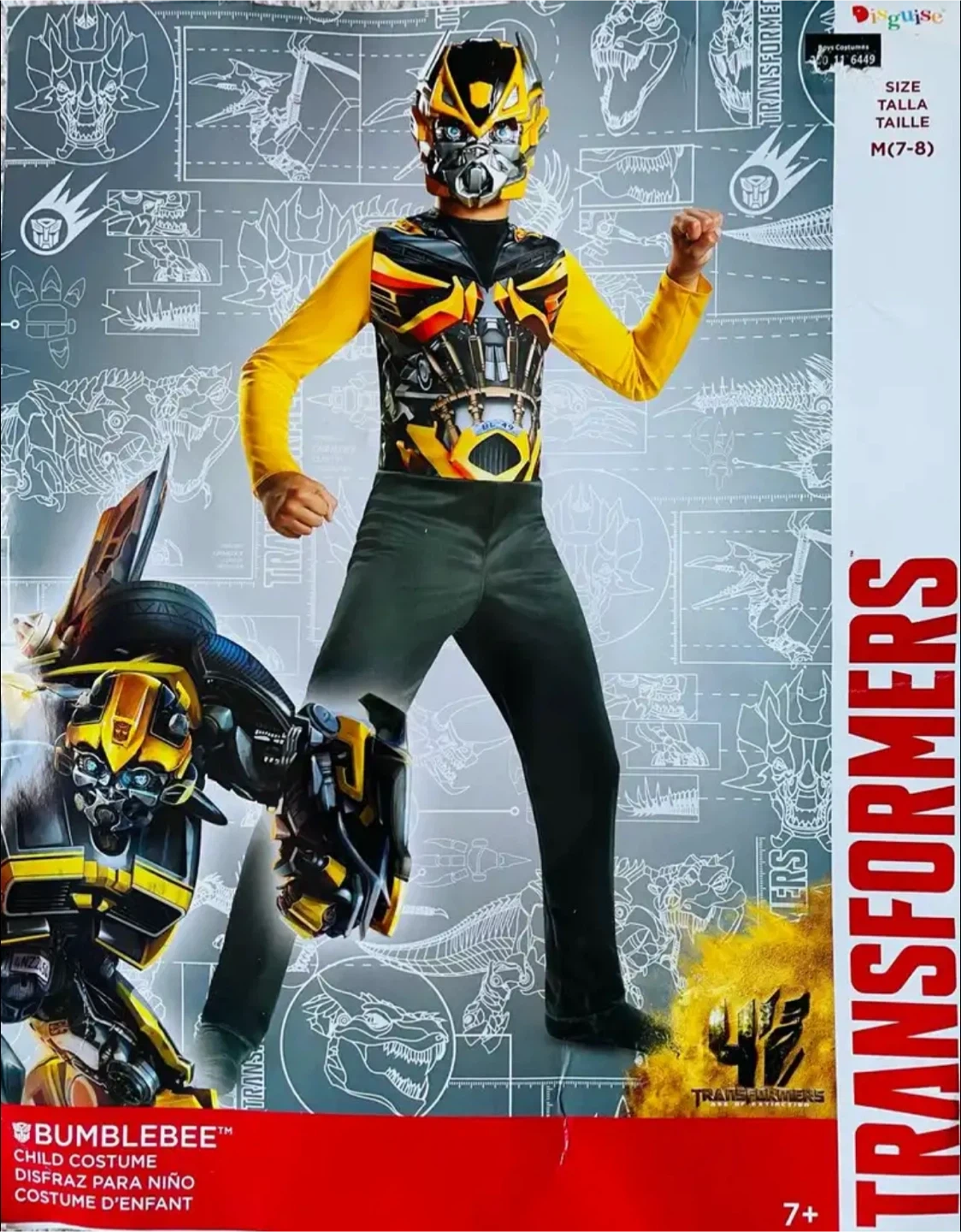 Selling a Transformers Bumblebee child costume! The size is M (7-8). Perfect for dress-up or Halloween!.