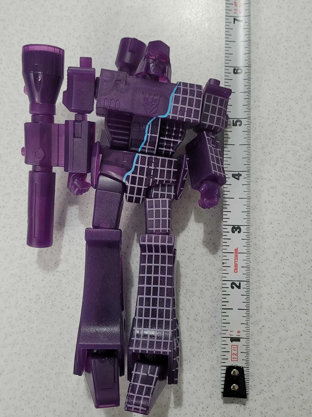 81Selling a Transformers Legacy Evolution Core Shockwave action figure! This purple robot features the Decepticon logo and a cool grid pattern. It comes with a weapon accessory as shown in the photos. Great for any Transformers fan!
