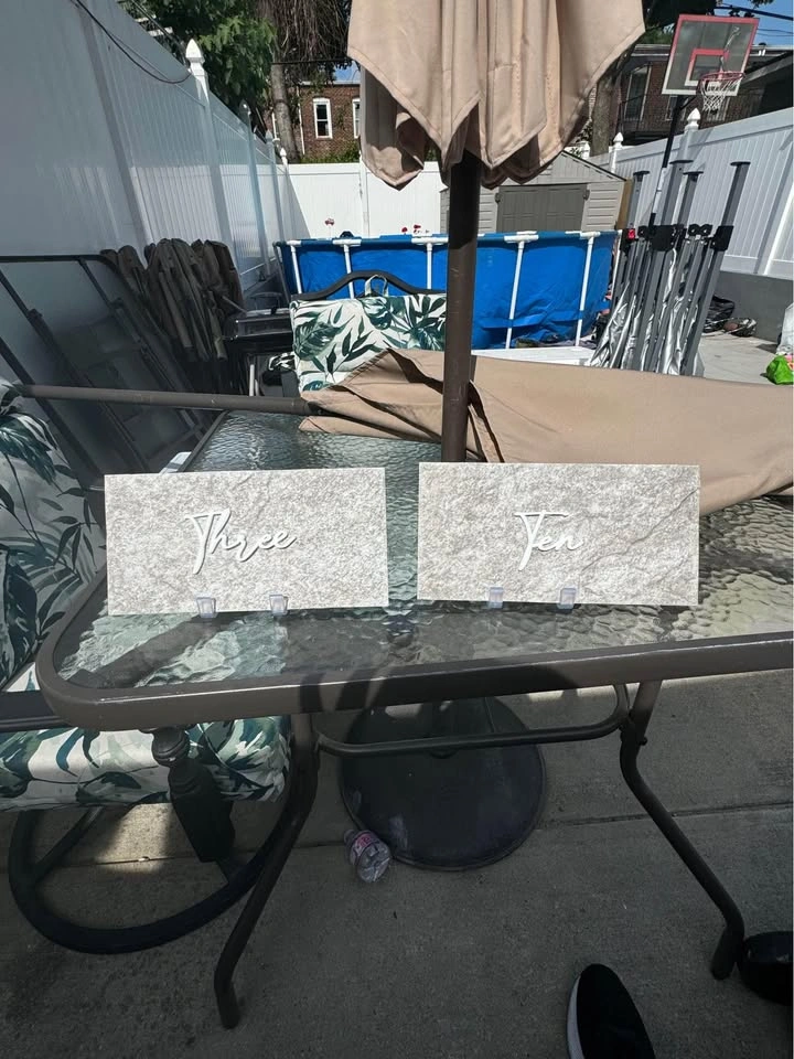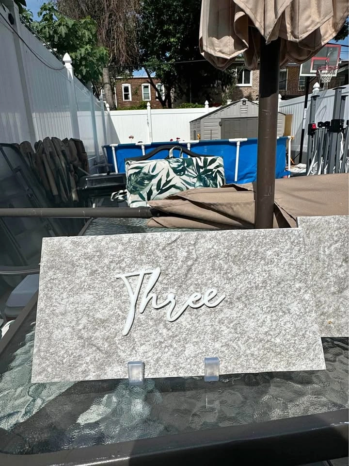 Beautiful stone table numbers for weddings with stands. Tables 1 to 20. Pickup in Queens, NY.