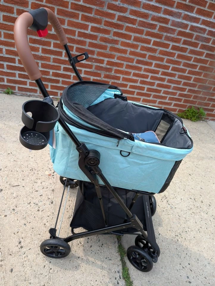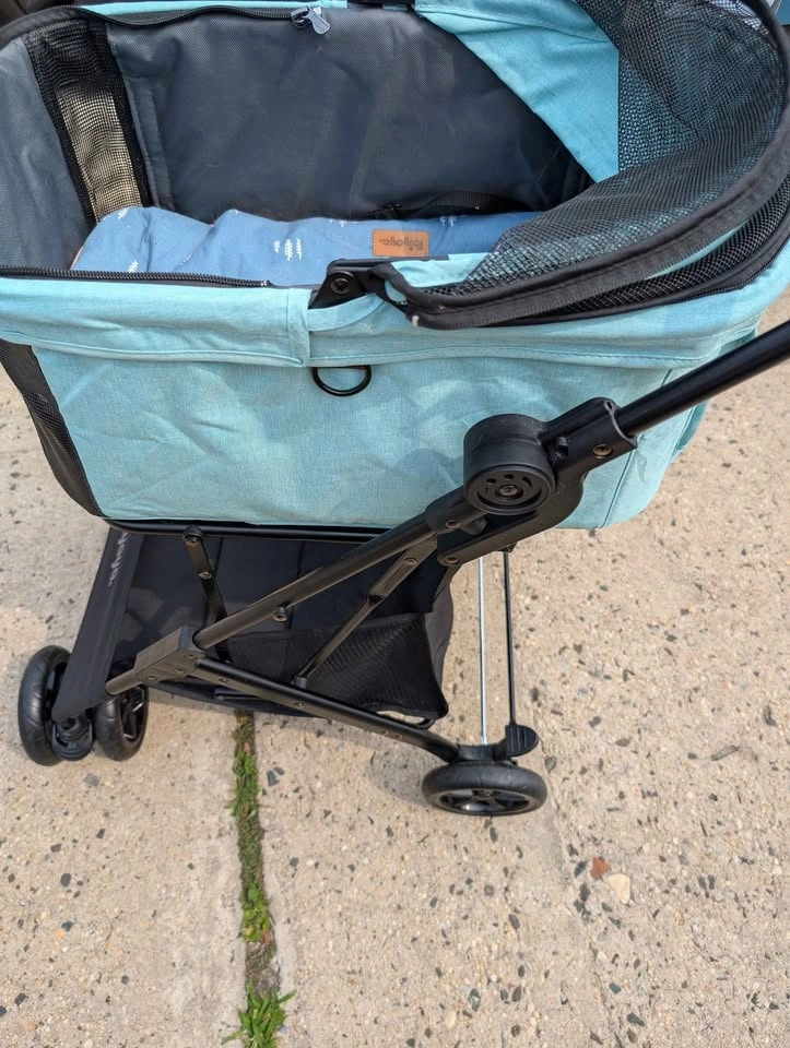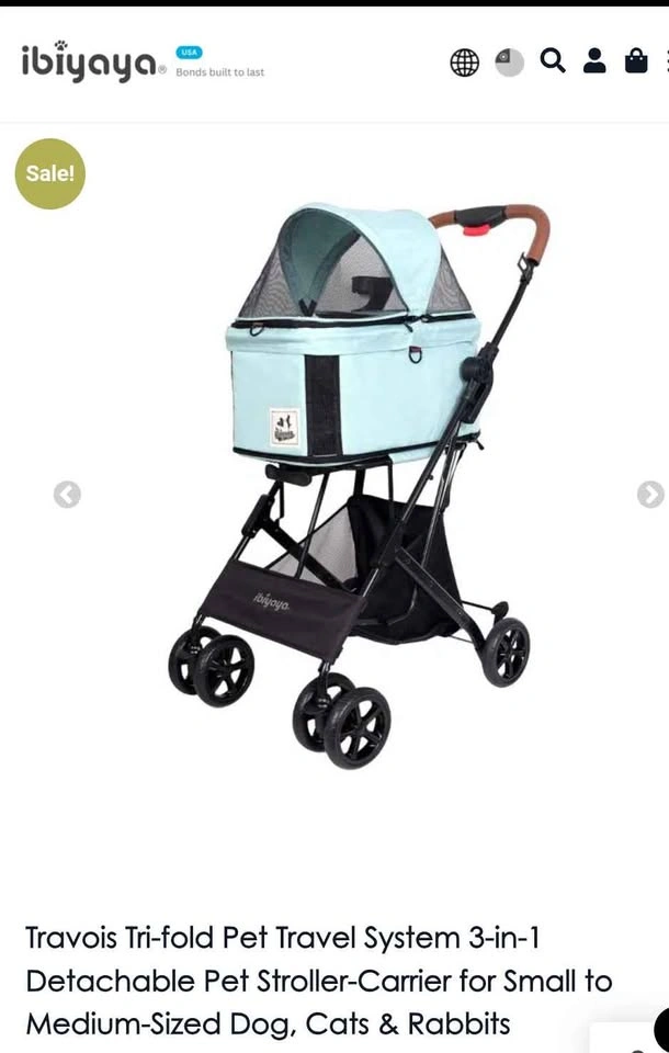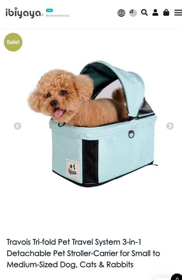 The Ibiyaya Travois Tri-Fold Pet System is a perfect 3-in-1 travel solution for small dogs, small to medium cats, and bunnies. This versatile pet stroller easily converts into a pet sling bag or car booster seat, featuring a comfortable bottom pad and an easy-to-clean design. The stroller frame includes a walking handle for effortless transport and can be folded in one quick motion. Ideal for both short walks and long trips, this medium pet stroller ensures your furry friend’s comfort and convenience. I fit it easily into the trunk of my car. The perfect medium pet stroller for the city. It's a 3-in-1 lightweight pet stroller with detachable carrier. You can close the stroller part with one hand. Color: Spearmint This is a very sturdy carrier, not the flimsy ones that will last one season.