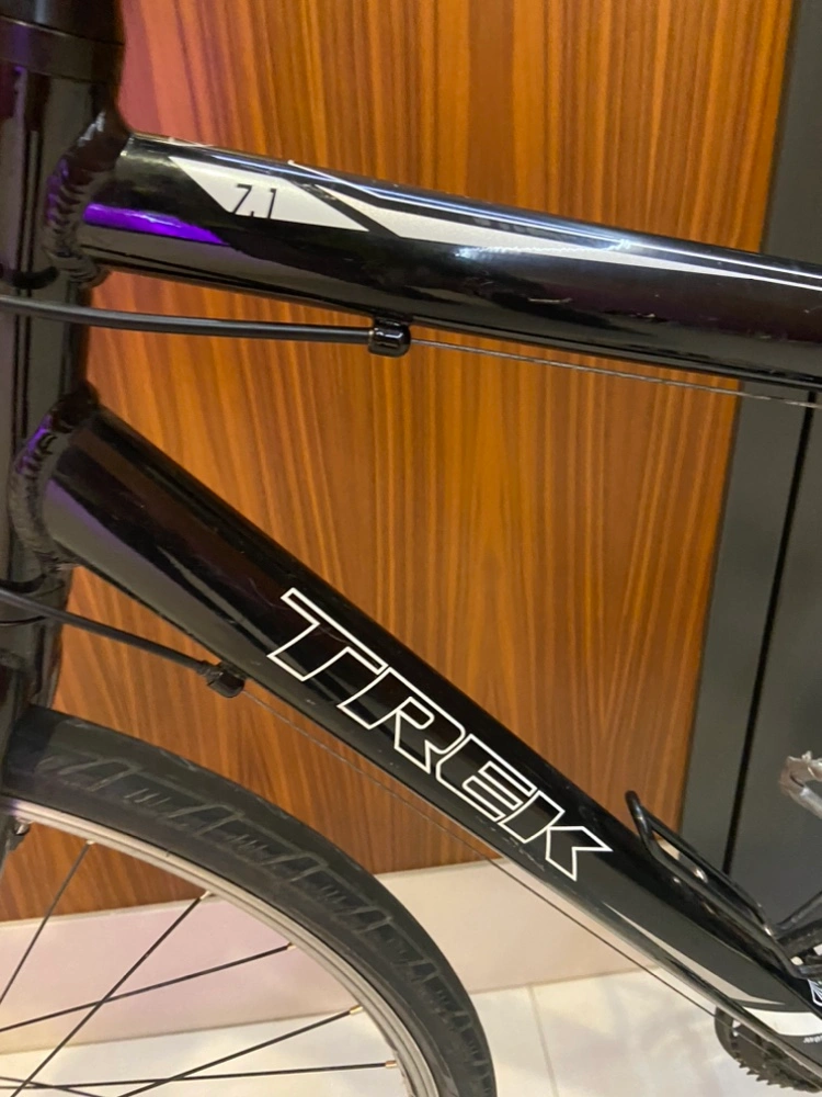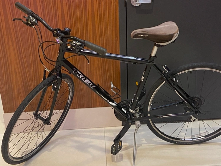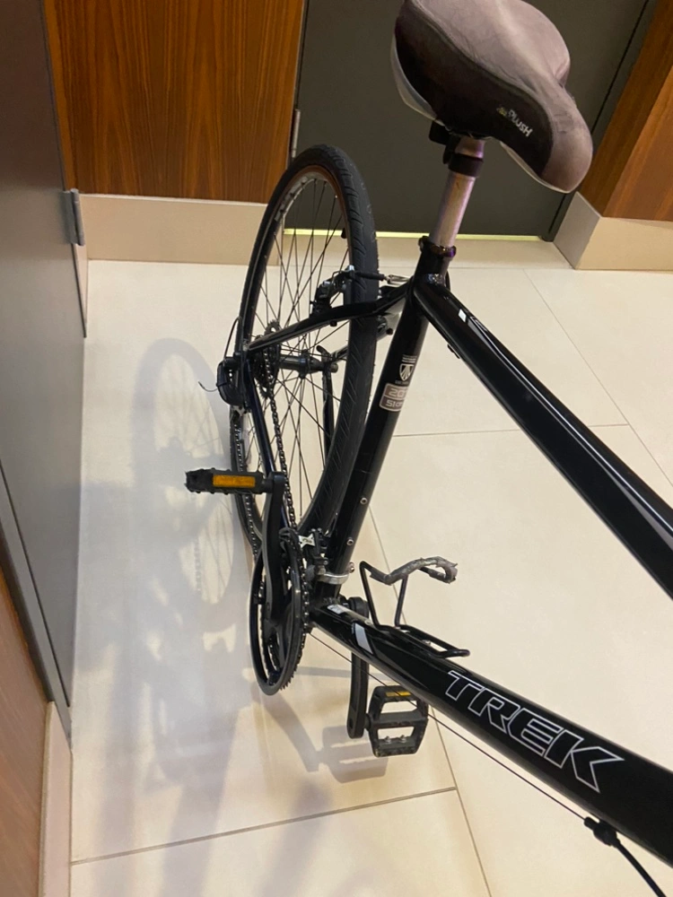 5Black men's bike. Has a few scratches The tires have good tread The bike does need to be washed but would be a great bike to get back on the road. It does come with a kickstand. The seat post is adjustable and has a comfy seat. The pedals are also adjustable and have some wear and tear. The brakes and gears are working. The bike is sold as-is.