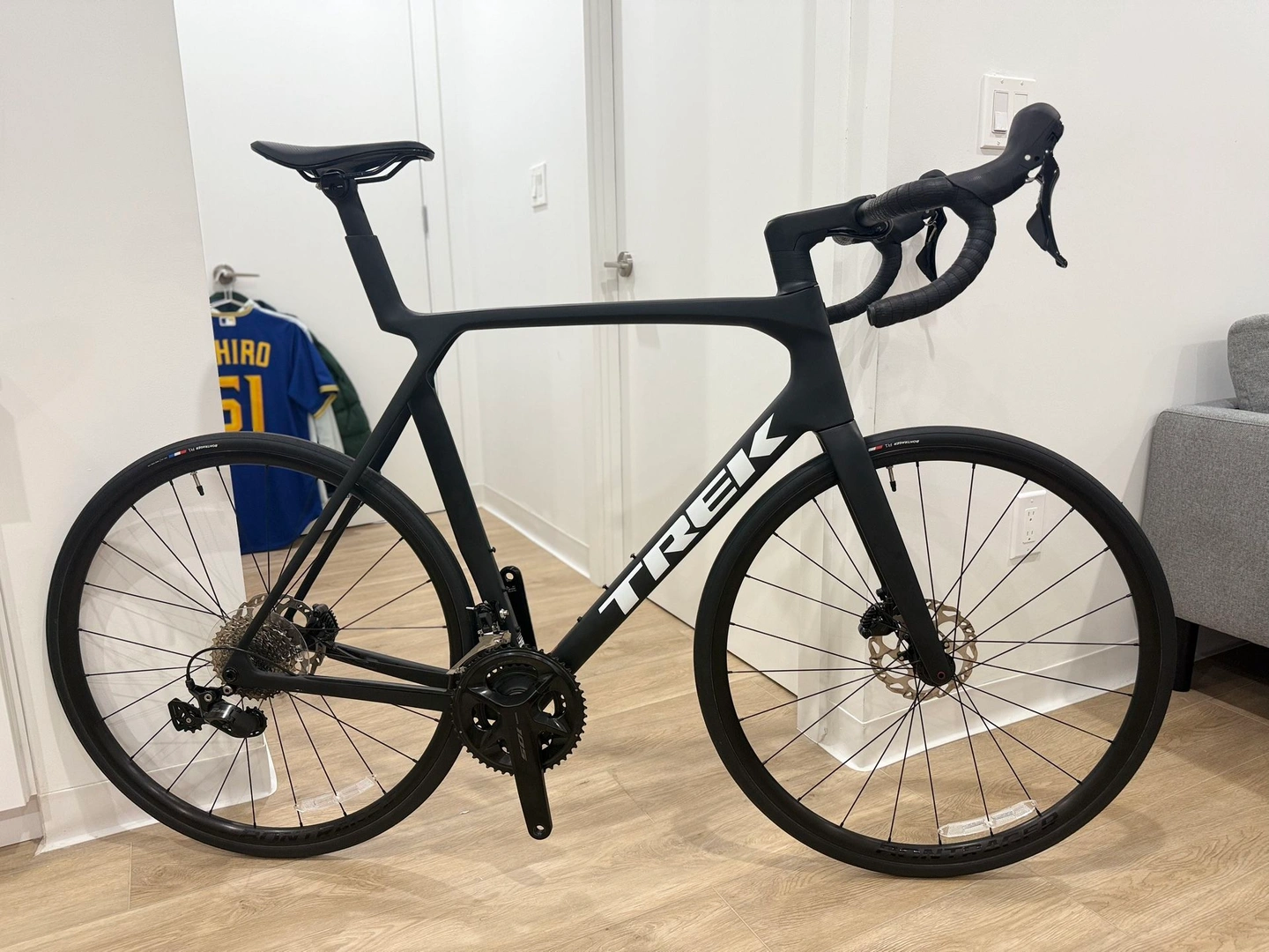 5BRAND NEW full carbon road bike; never ridden. Does not come with chain. Frame Size: 61-63 cm Brand: Trek Wheel Size: 29 in / 700c Frame Material: Carbon fiber