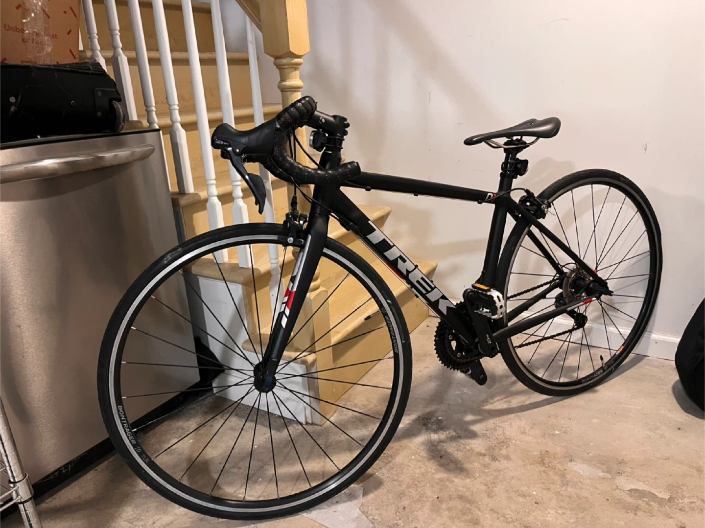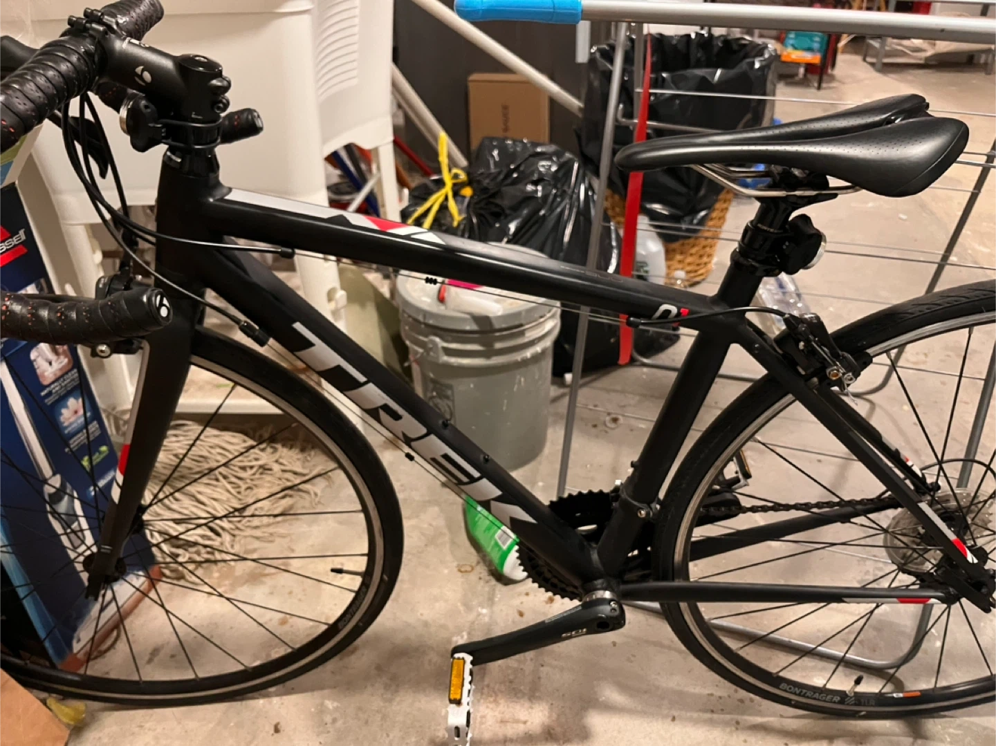 Selling a Trek road bike in black. It features Shimano 105 components, replacements for the og breaks and Wellgo pedals. A very fun and fast ride, lite frame and small frame 48 or 49 (I am 5ft and it fits me perfectly) I don’t ride her often - making space. Bike review: https://www.cyclist.co.uk/reviews/trek-12-review