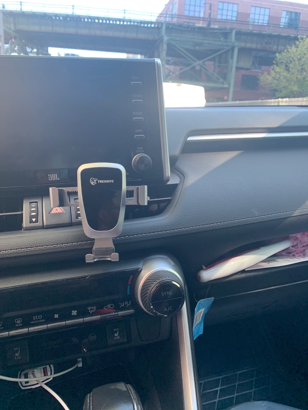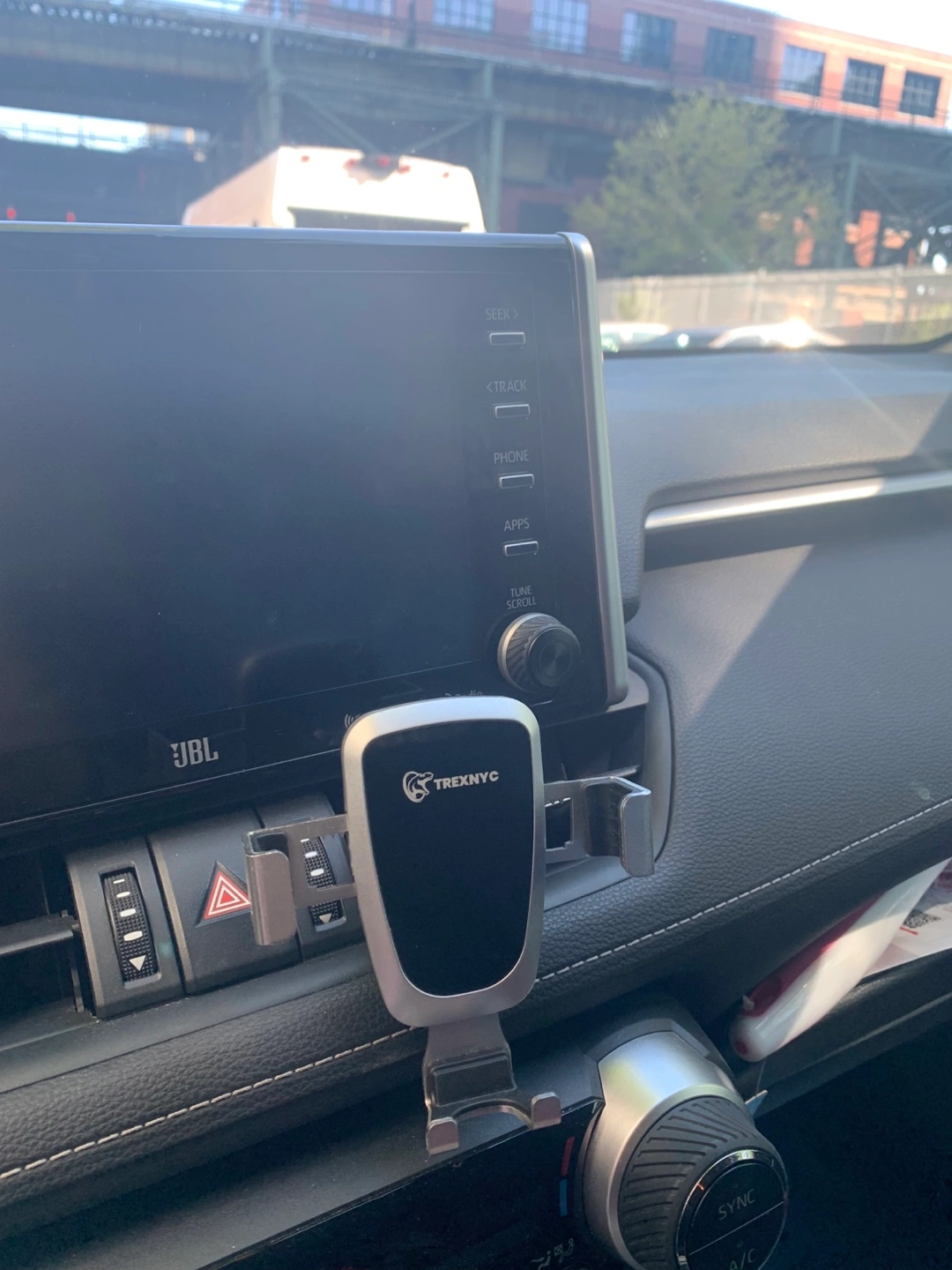 Selling a TREXNYC car phone mount. It's in great condition and ready to use! This mount is designed to securely hold your phone while you drive, providing a convenient and safe way to access navigation and other apps. It's easy to install and adjust for optimal viewing