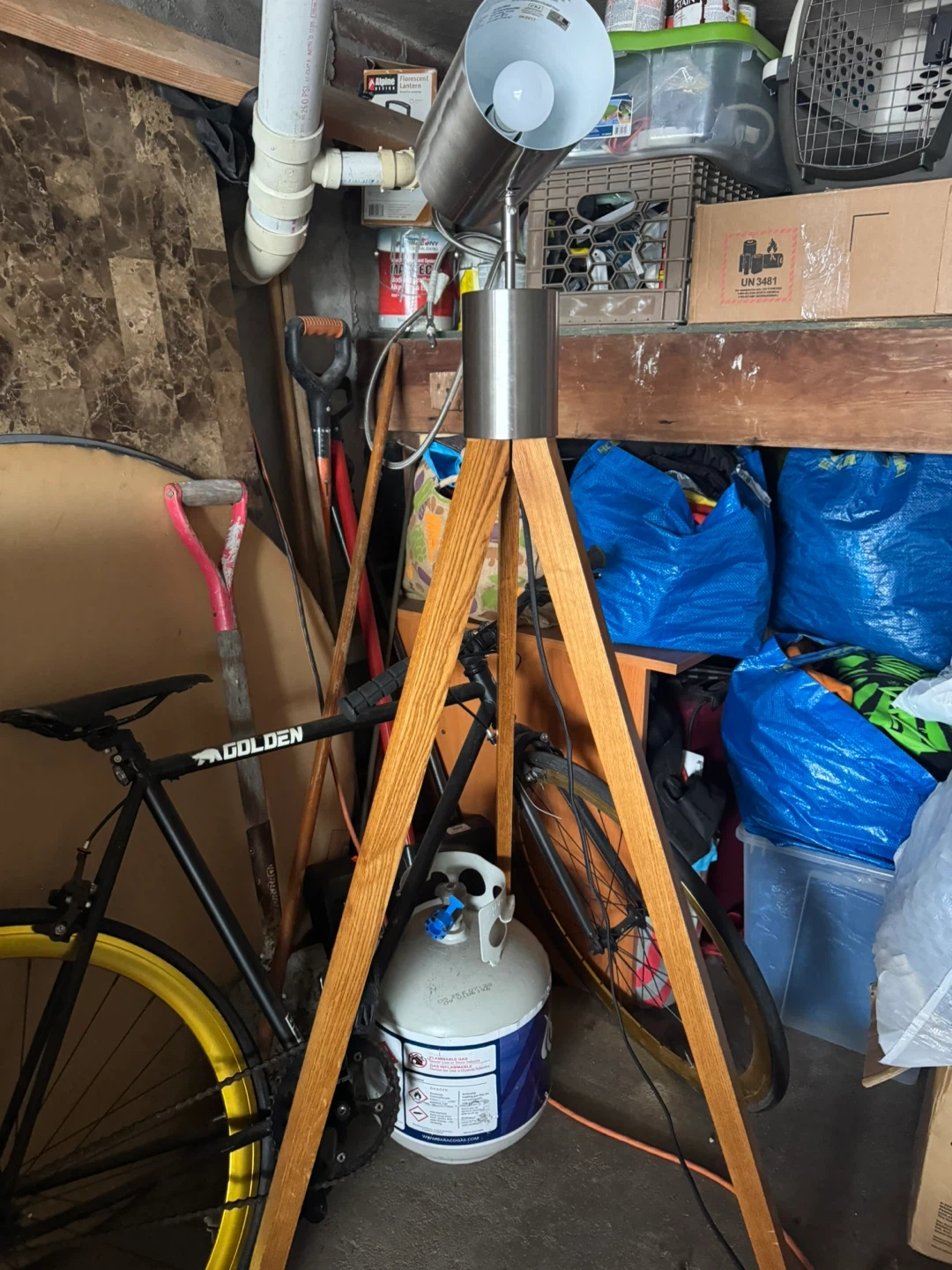 10Selling a stylish tripod floor lamp with a wooden base and metal shade. It's in great condition and would look great in any room. The lamp provides a nice ambient light and is perfect for reading or relaxing