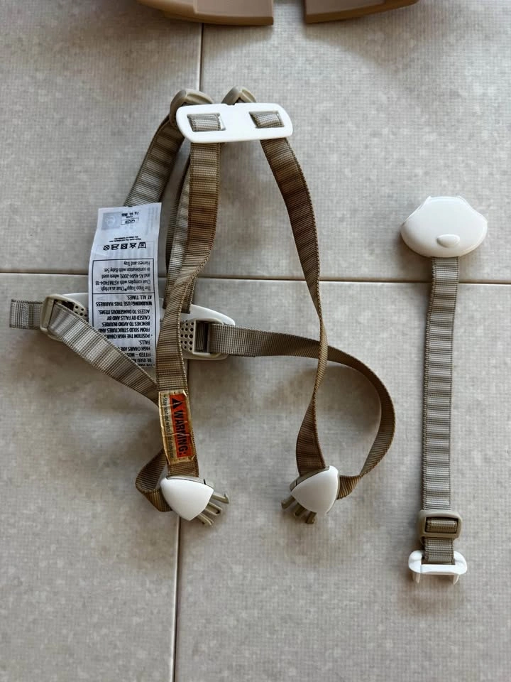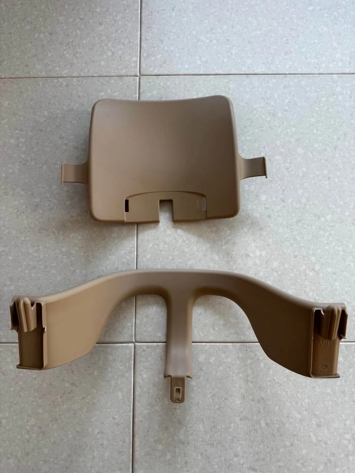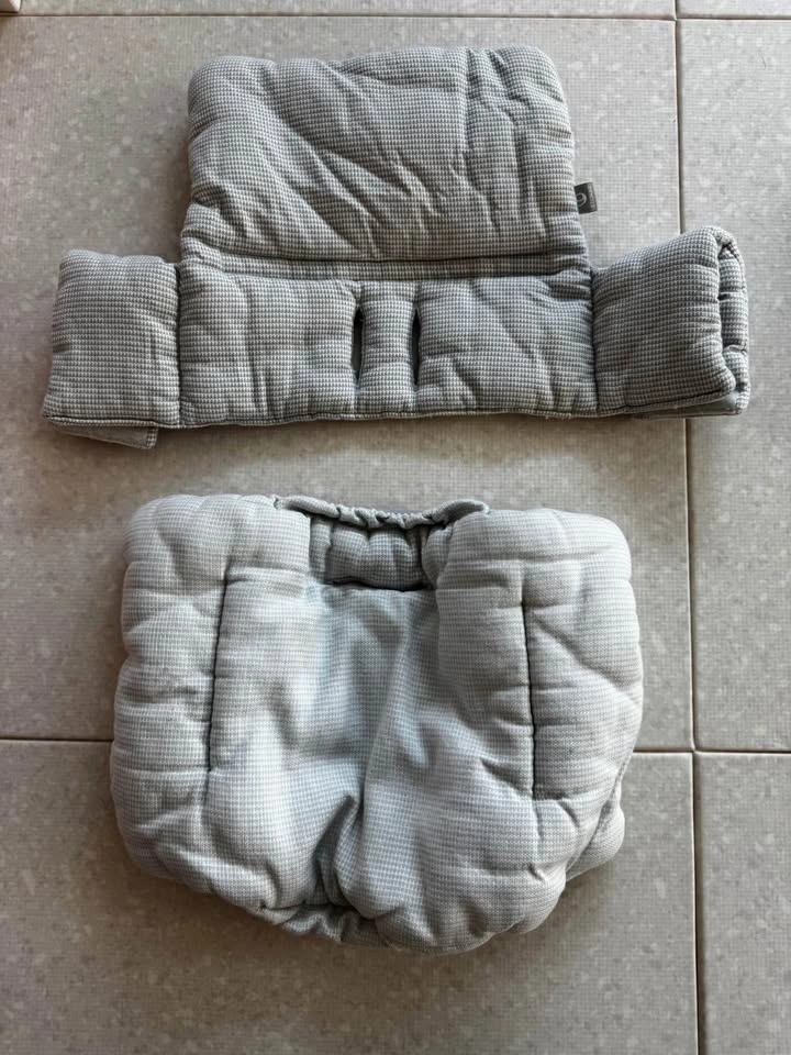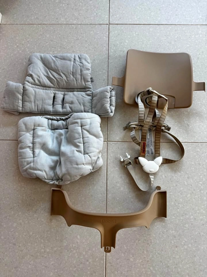 Selling a gently used Tripp Trapp® Baby Set with cushion. The cushion has some minor stains, and the Baby Set shows light wear from attaching/detaching, but everything is fully functional with no issues in use.