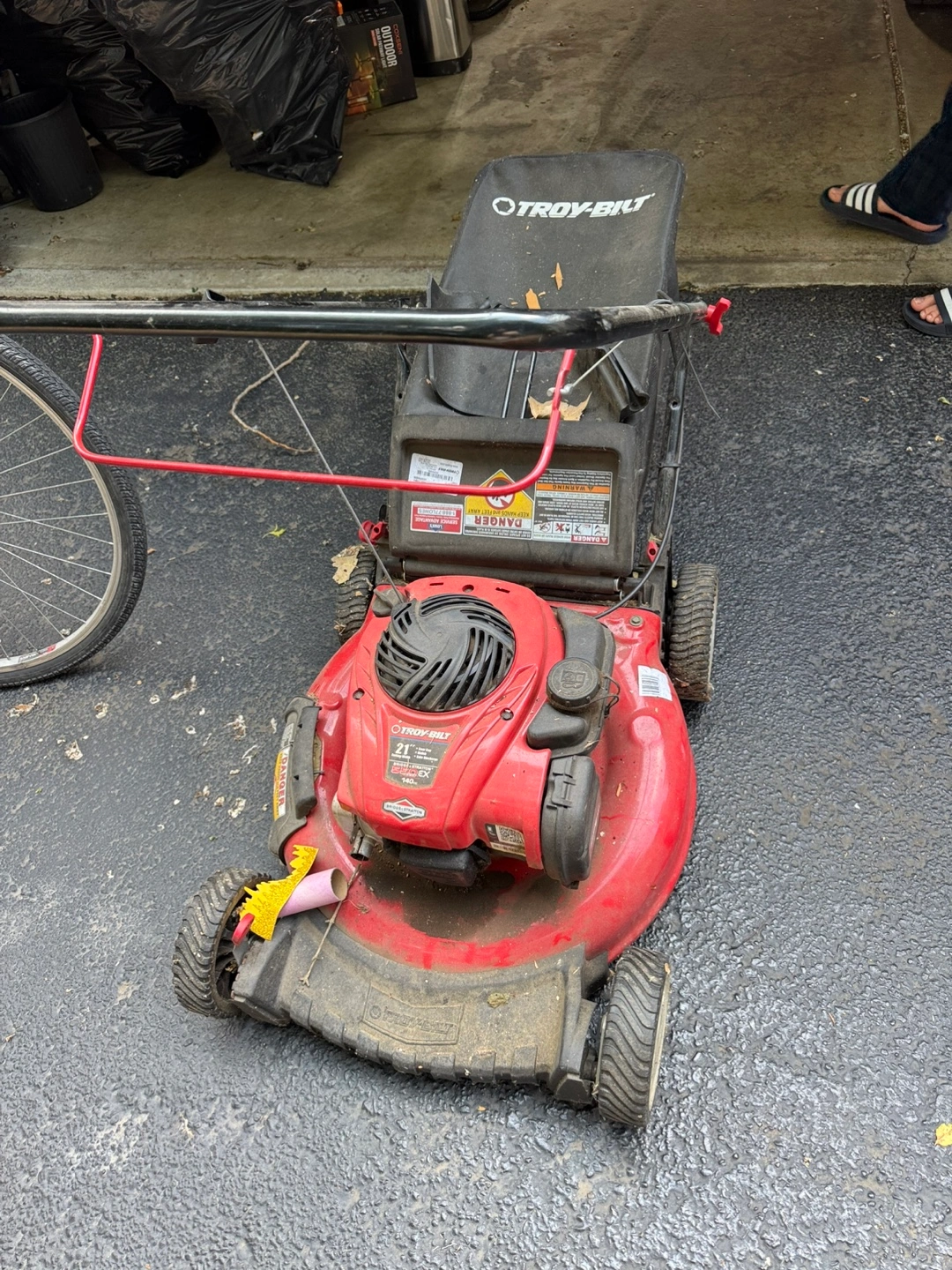 Selling a used Troy-Bilt 21" lawn mower. It's red and has some signs of use, as you can see in the pictures. Works well!