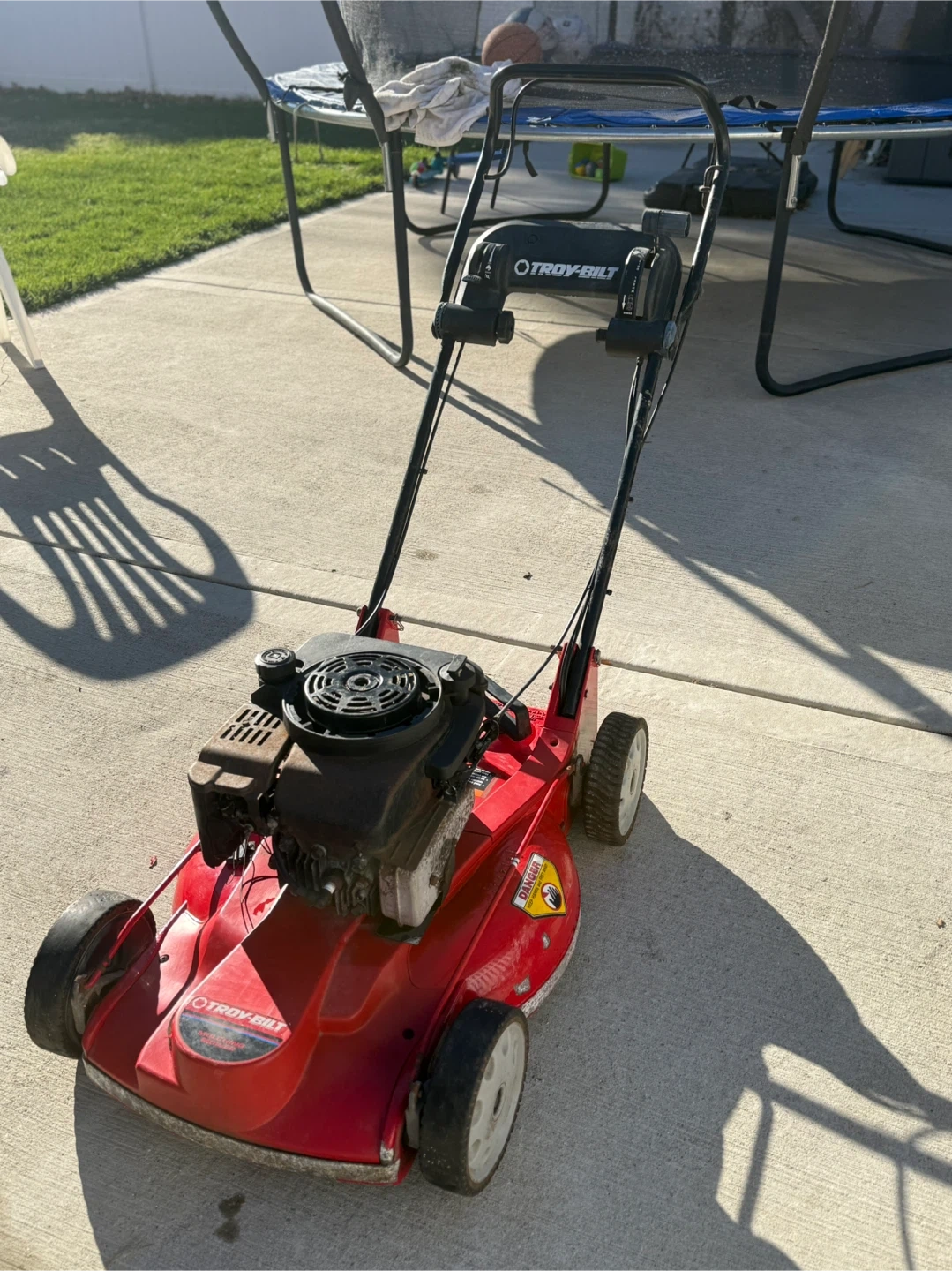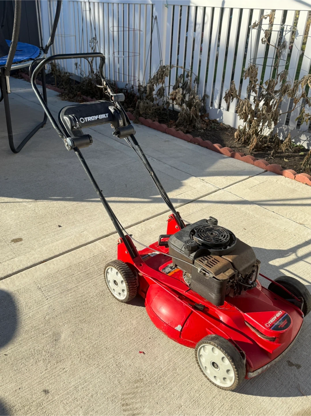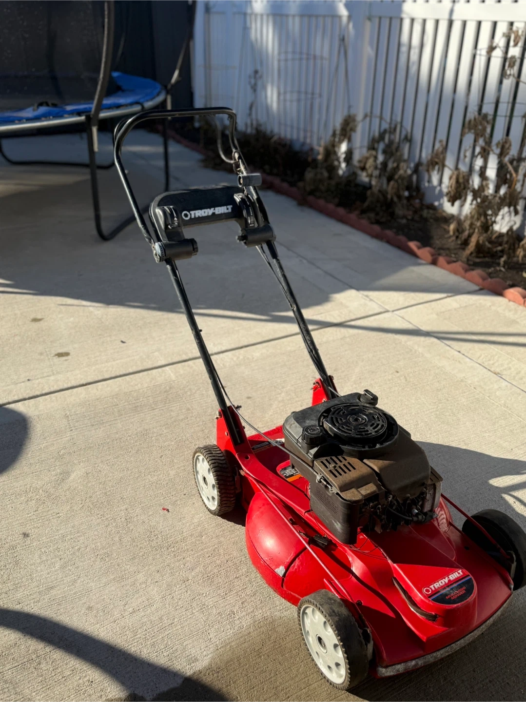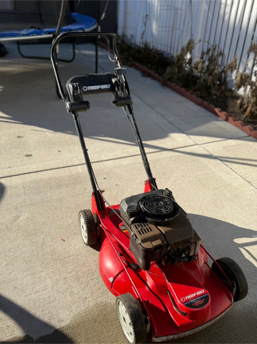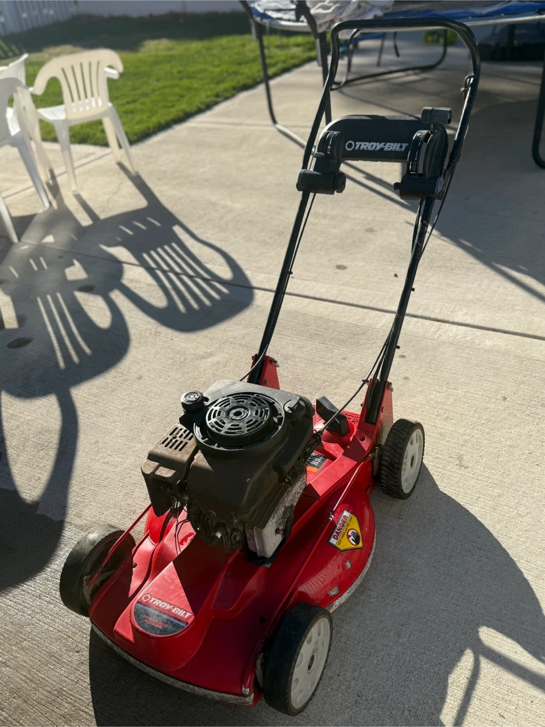 18Selling a Troy-Bilt lawn mower/mulcher. It’s self-propelling and gas-powered. 🛠️Note: Pull cord is snapped. Has been sitting in storage.