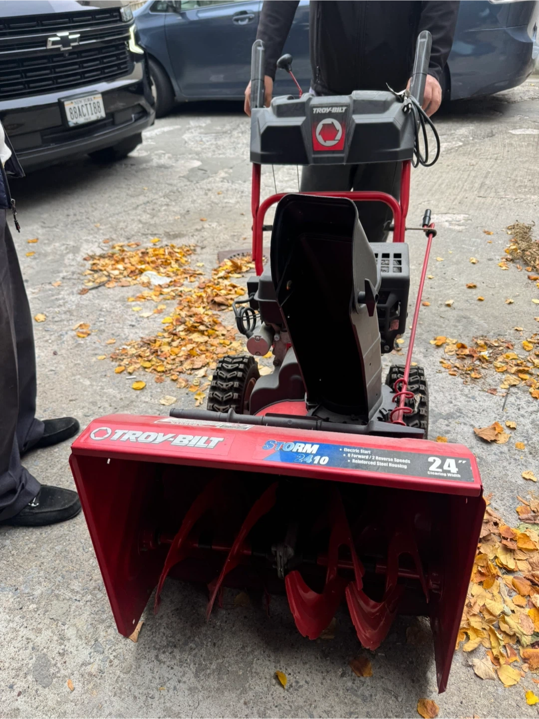 21Selling a Troy-Bilt Storm 2410 snow blower. It has a 24-inch clearing width and is in good condition. It features electric start and 5 forward / 2 reverse speeds. Also has an all-steel housing