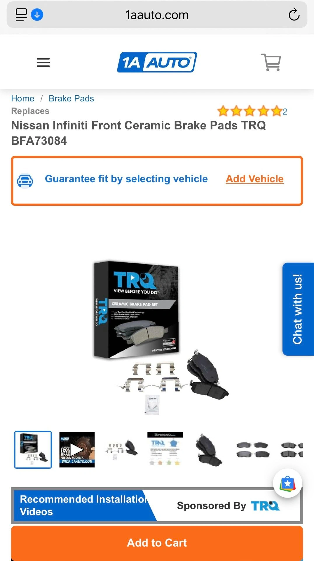Show allTRQ BFA73084 Nissan Infiniti Front Ceramic Brake Pads