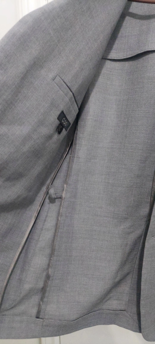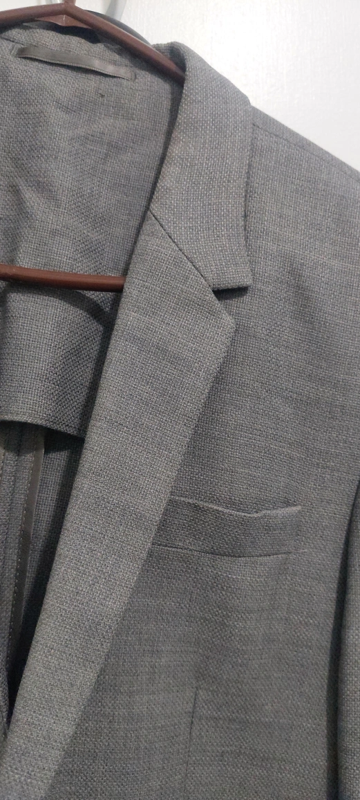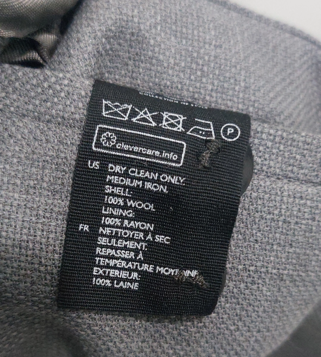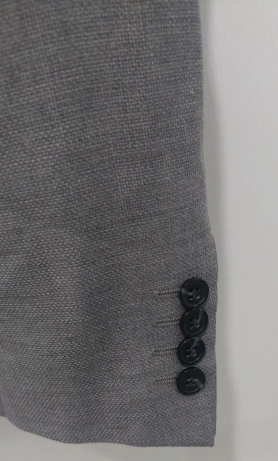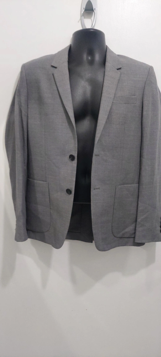 Men's grey blazer. 100% wool. Dry clean only. Two pockets. Size US 36R, CA 36R. Made in Romania. Gently used in excellent condition.