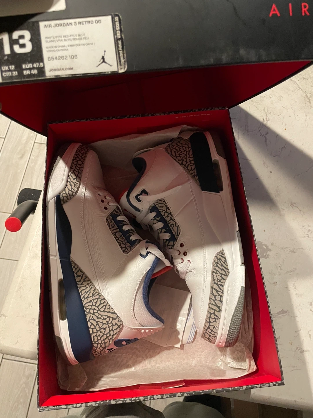 15Selling a pair of Nike Air Jordan 3 Retro OG in the True Blue colorway. They are a size 13 and come with the original box & insoles.