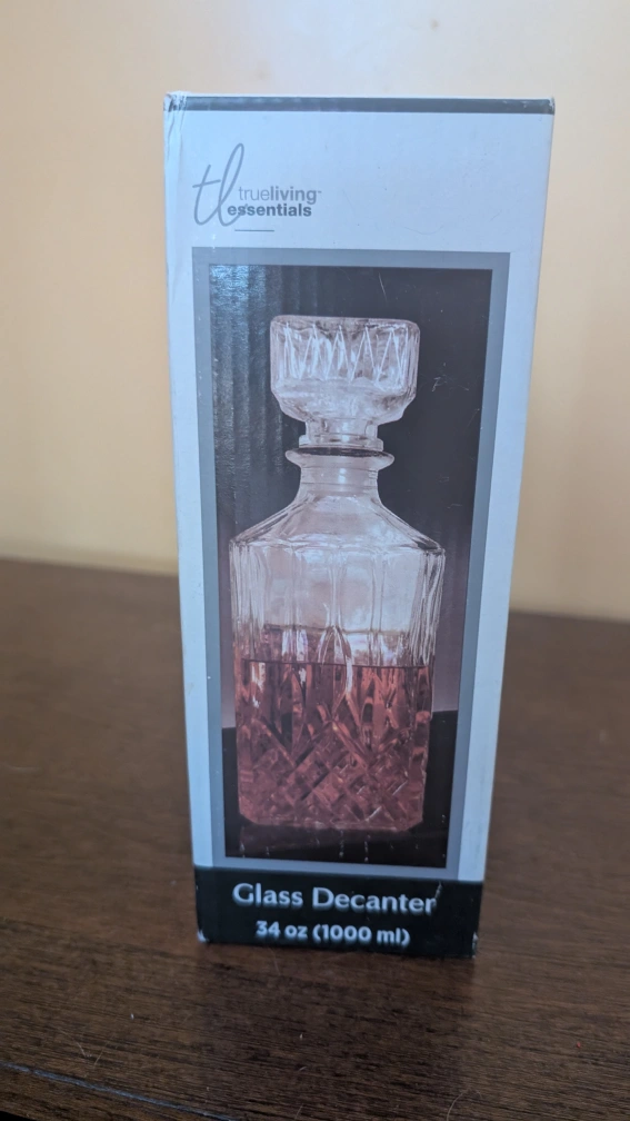 Selling a Trueliving Essentials glass decanter! It holds 34 oz (1000 ml) and comes in its original box. Perfect for serving your favorite beverages in style