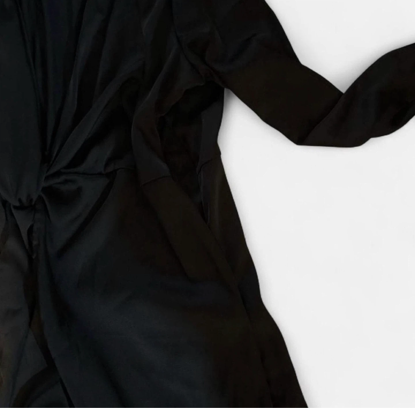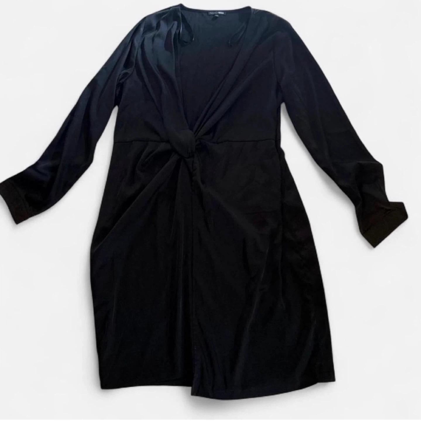 This Fashion Nova black dress features a twist front detail and long sleeves. It's made from 96% polyester and 4% spandex. Dress is size 1X.