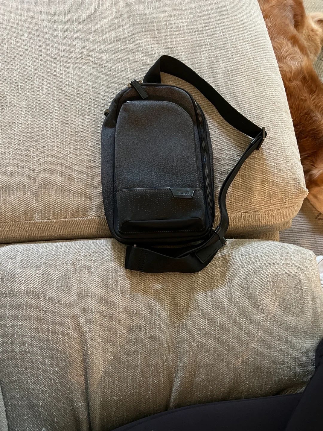 10Selling a Tumi sling bag in black. It's in great condition and ready for a new owner! Perfect for carrying your essentials on the go