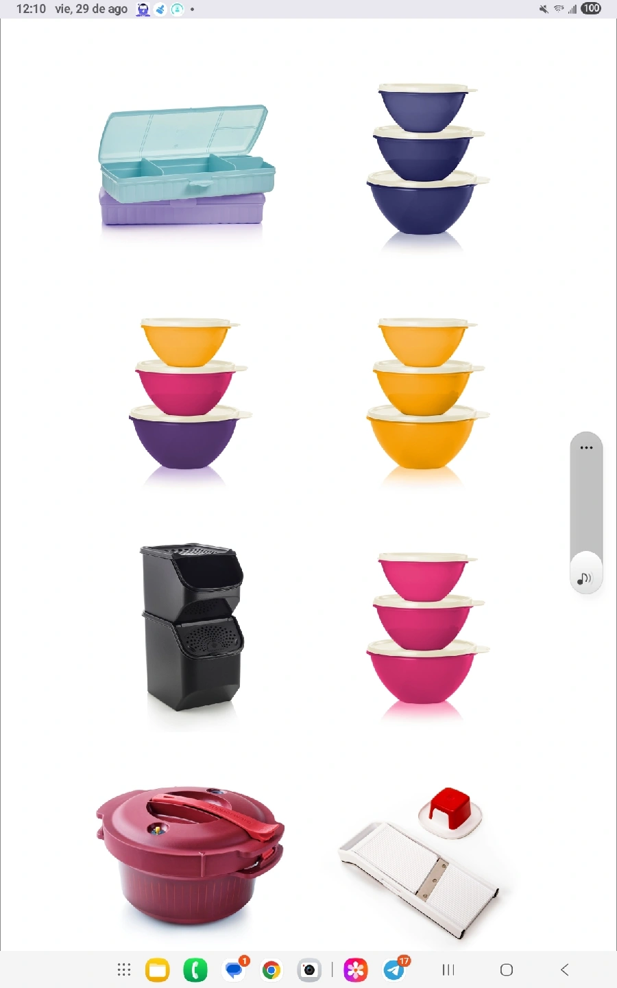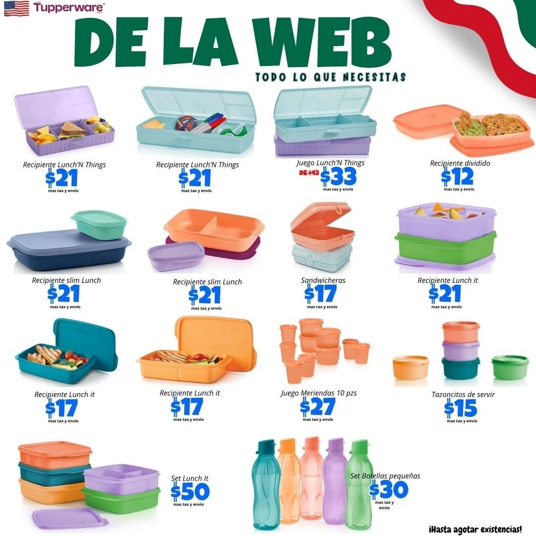 I have a variety of Tupperware items available, including lunch boxes, tumblers, and bowls! There are different sizes and colors to choose from. Perfect for storing food and drinks on the go