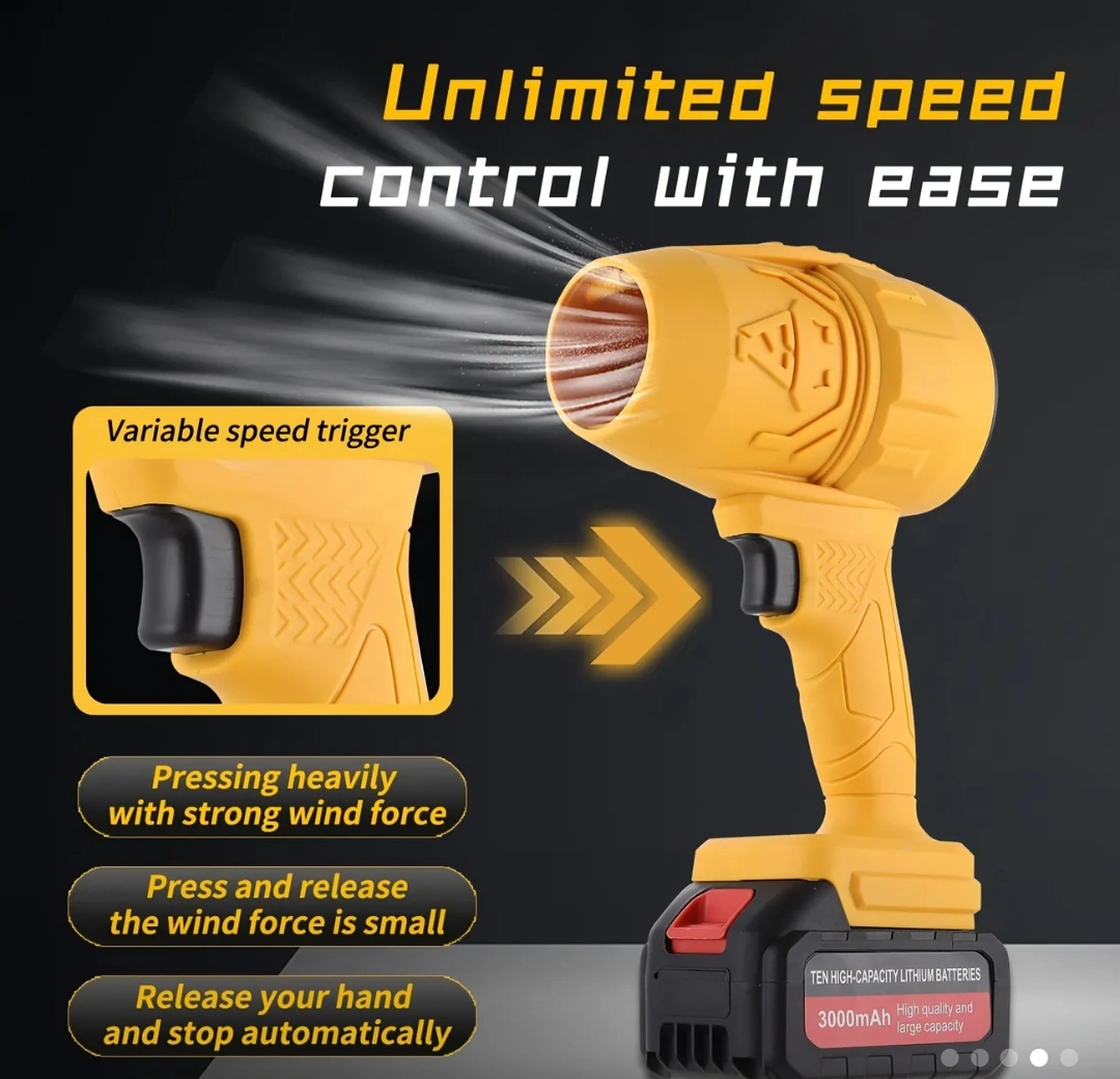 10I'm selling a Turbofan Lithium Ion Storm Machine. It features strong wind power and an ultra-long battery life. It also comes with a brushless copper core. The dimensions are 15cm/5.91in wide and 30cm/11.81in tall. Included are a belt charger and two batteries.