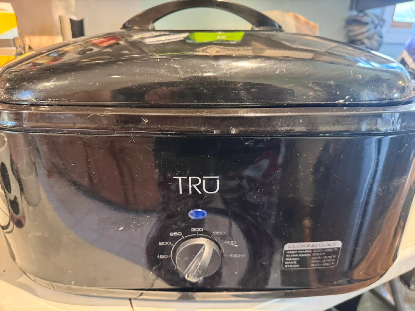 60Selling a TRU 18 quart roaster oven! It has a cooking guide right on the front with settings for keep warm, slow cook, bake, and steam. It also comes with a removable metal rack.