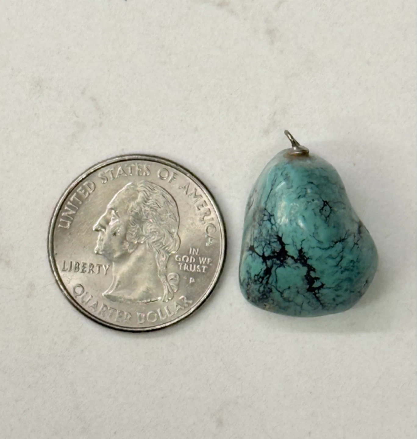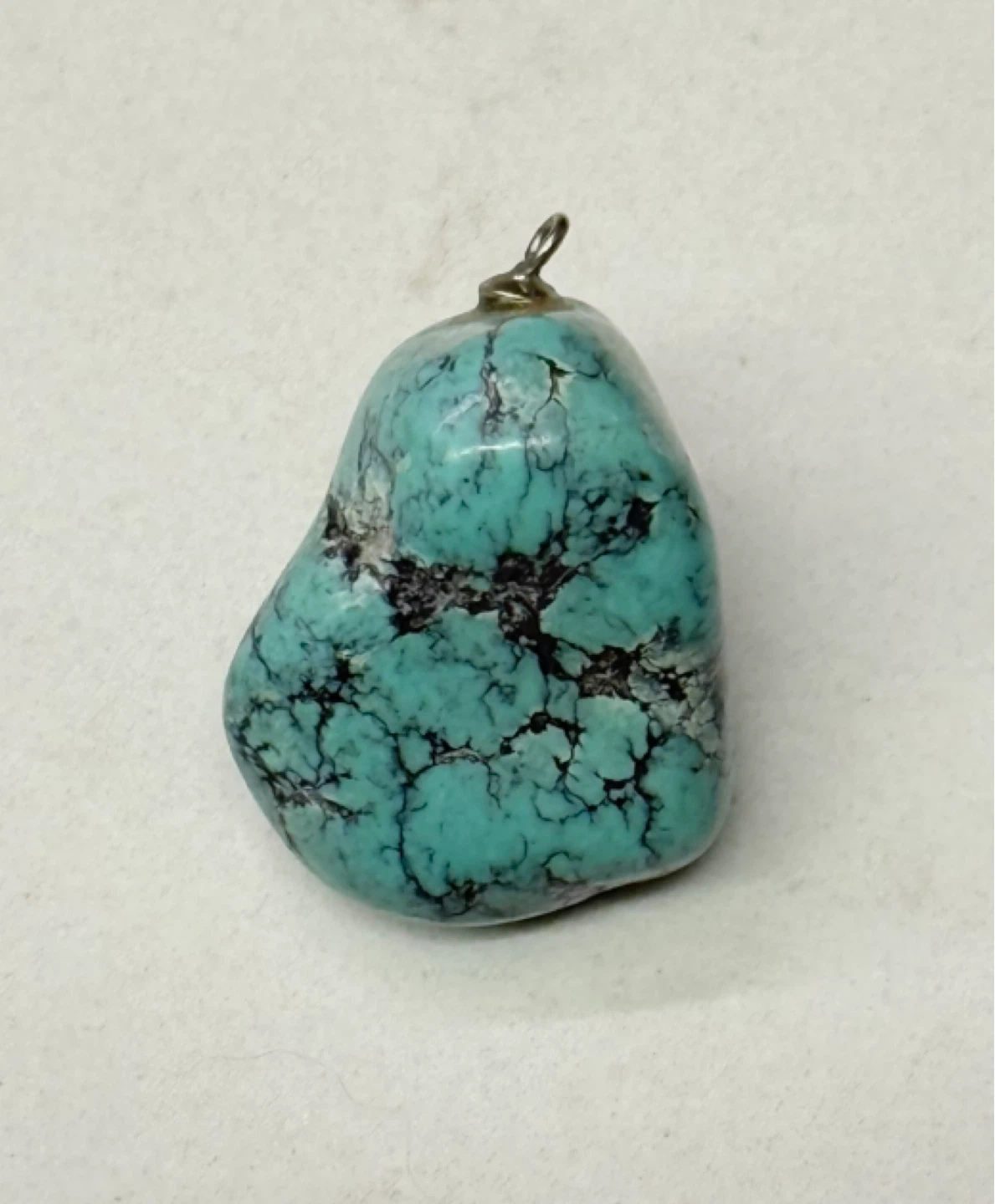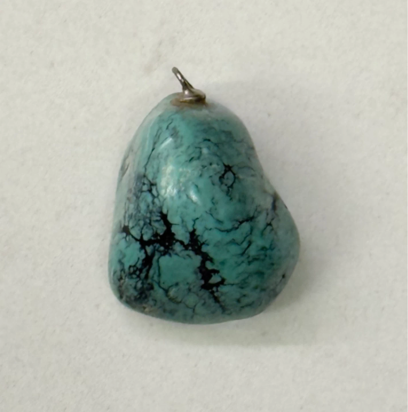 Turquoise stone pendant. It has a unique shape and a vibrant color. Perfect for jewelry making or adding to your collection! The pendant has a metal bail for easy attachment to a chain or cord. It's in good condition, with some natural variations and imperfections that add to its character Selling pendant collection from 2000’s all purchased new in California.