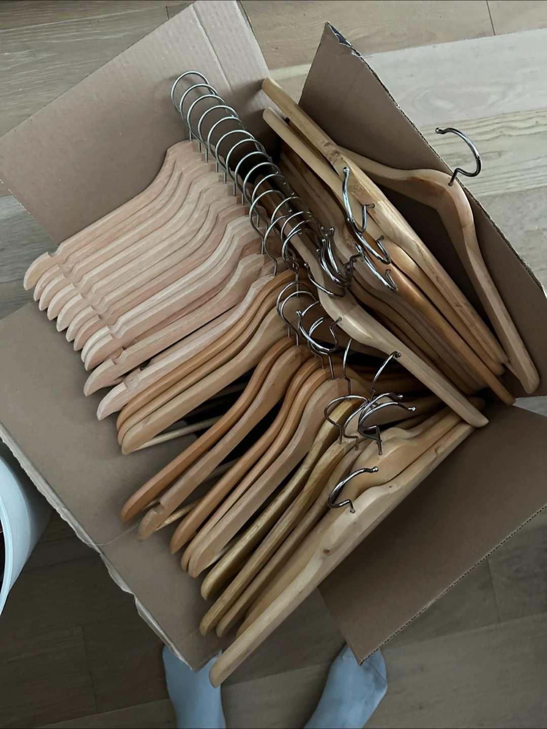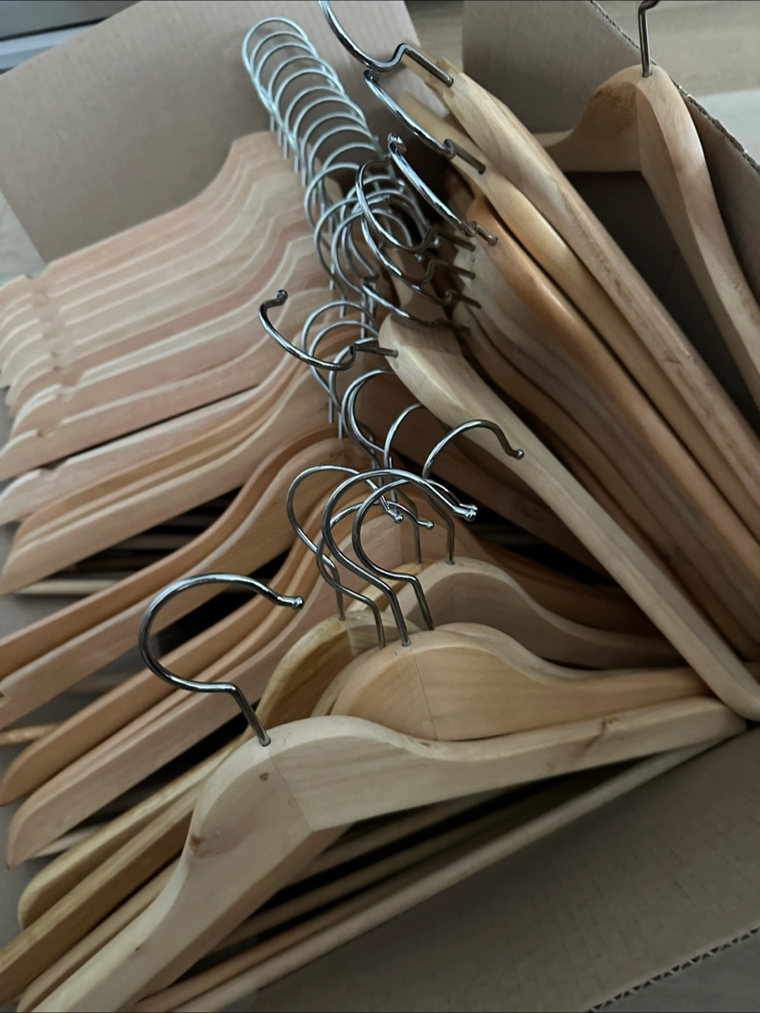 Selling a box of 40 wooden clothes hangers. They're in great shape and ready to organize your closet!