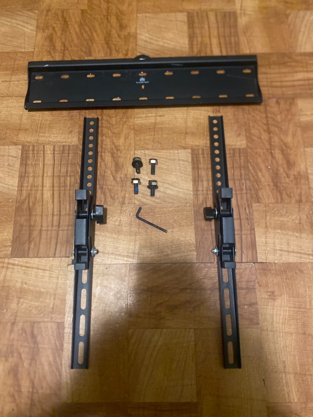 Selling a TV wall mount kit! It includes the mounting plate, two vertical rails, screws, and an Allen wrench. Perfect for getting your TV up on the wall and saving space
