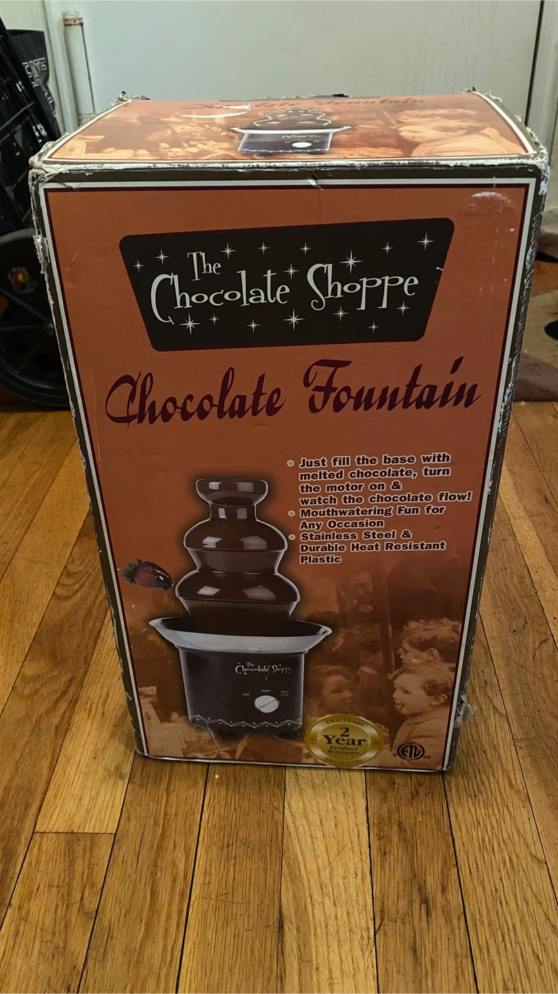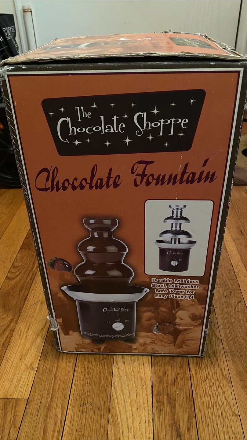 Selling a brand new The Chocolate Shoppe Chocolate Fountain, still in its original box! It's ready to bring some chocolatey fun to any occasion. Just fill the base with melted chocolate, turn on the motor, and watch the chocolate flow! It features a durable stainless steel tower for easy cleanup and is made of heat-resistant plastic.