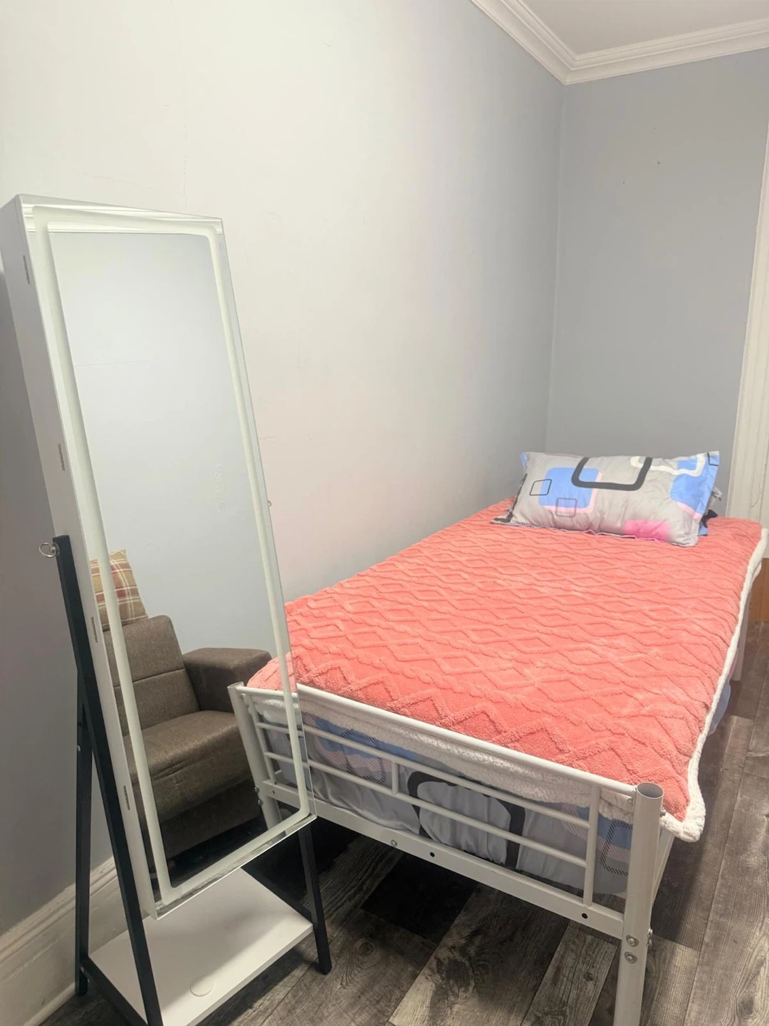 60It was only used for one month because I was camping in NJ. The mattress is 12 inches thick and ultra comfortable. Its original price was $250. The mirror is also for sale; I can offer a good price for everything together.