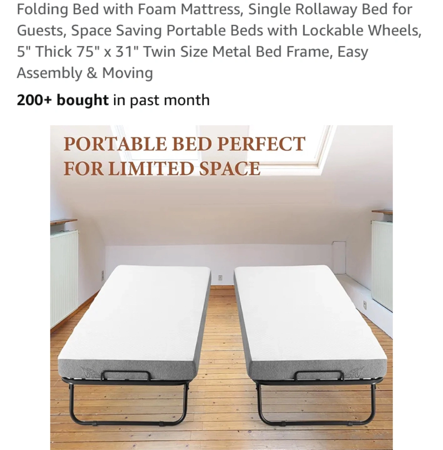 Folding bed with a metal frame. The mattress has a white top and gray sides. Perfect for guests or limited spaces, this bed is exactly what you need to get a great night's sleep.