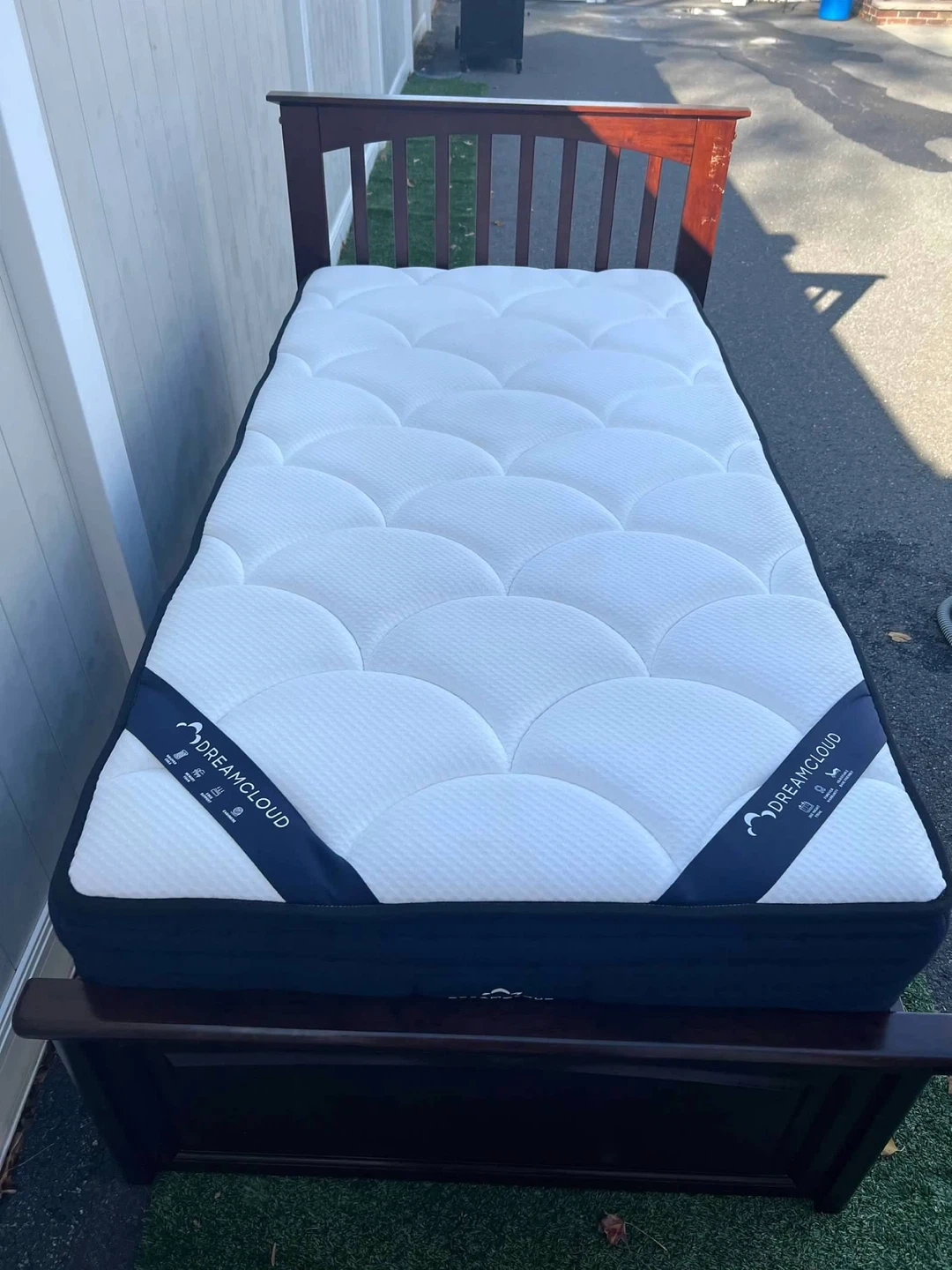 76Storage bed with 2 drawers that go underneath the bed Minor scratches but overall is good condition Mattress available for free (good condition) Delivery available Selling a DreamCloud twin mattress. It’s in great condition and ready for a new home! Perfect for a guest room or child's bedroom. The mattress offers comfort and support for a good night's sleep