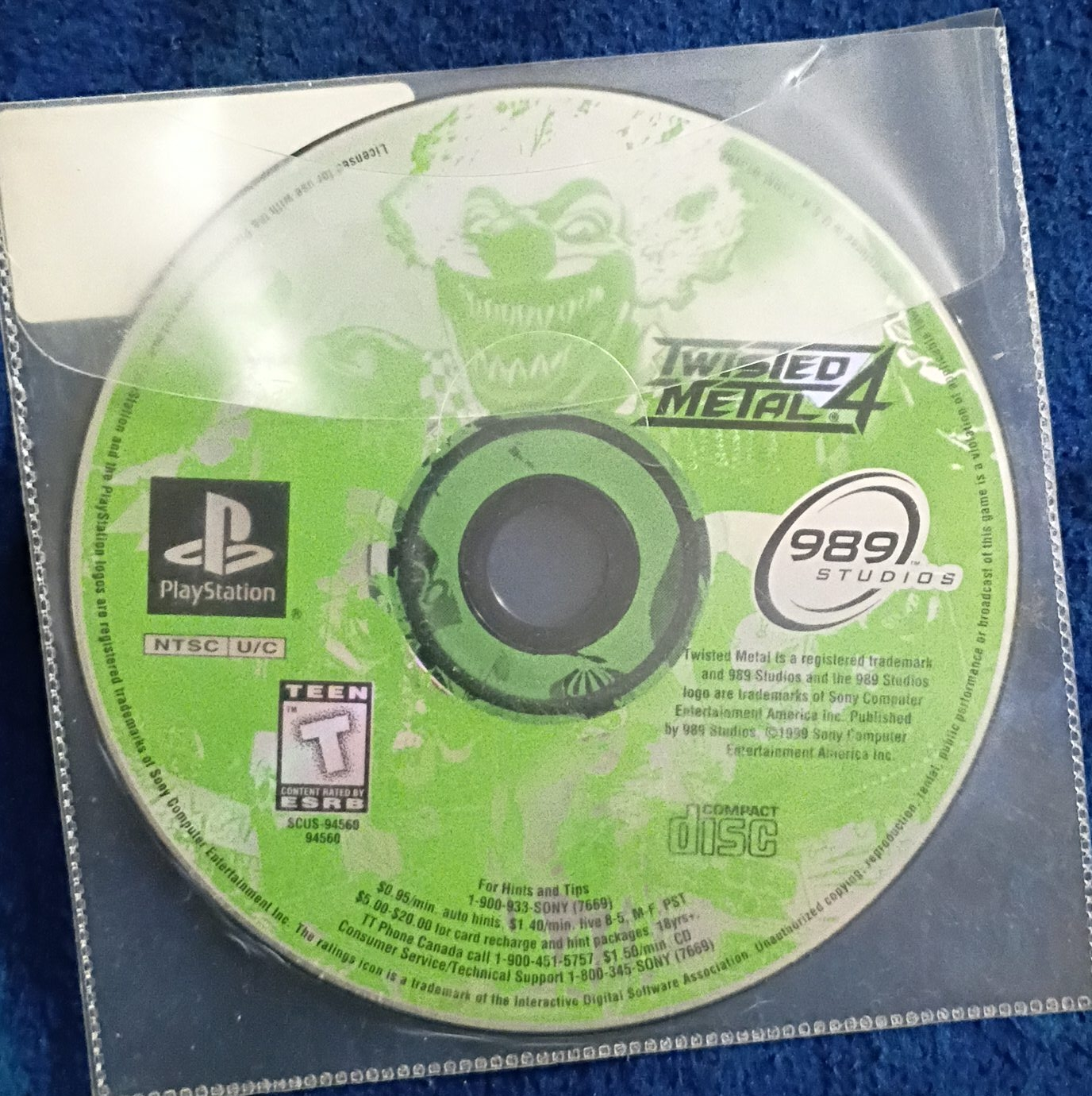 Selling Twisted Metal 4 for the original PlayStation! This disc is in good condition and ready to play. A classic game from 1999 by 989 Studios and Sony Computer Entertainment America Inc