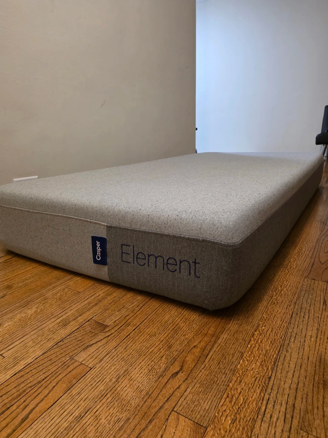 This is a Casper Element mattress. It's a light gray color and a firm mattress. Great for a guest room or someone who prefers a firmer sleeping surface!
