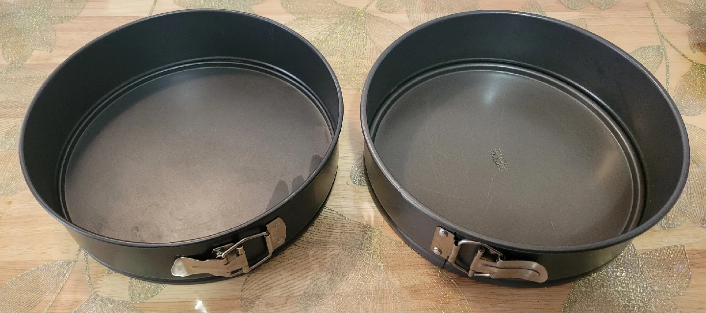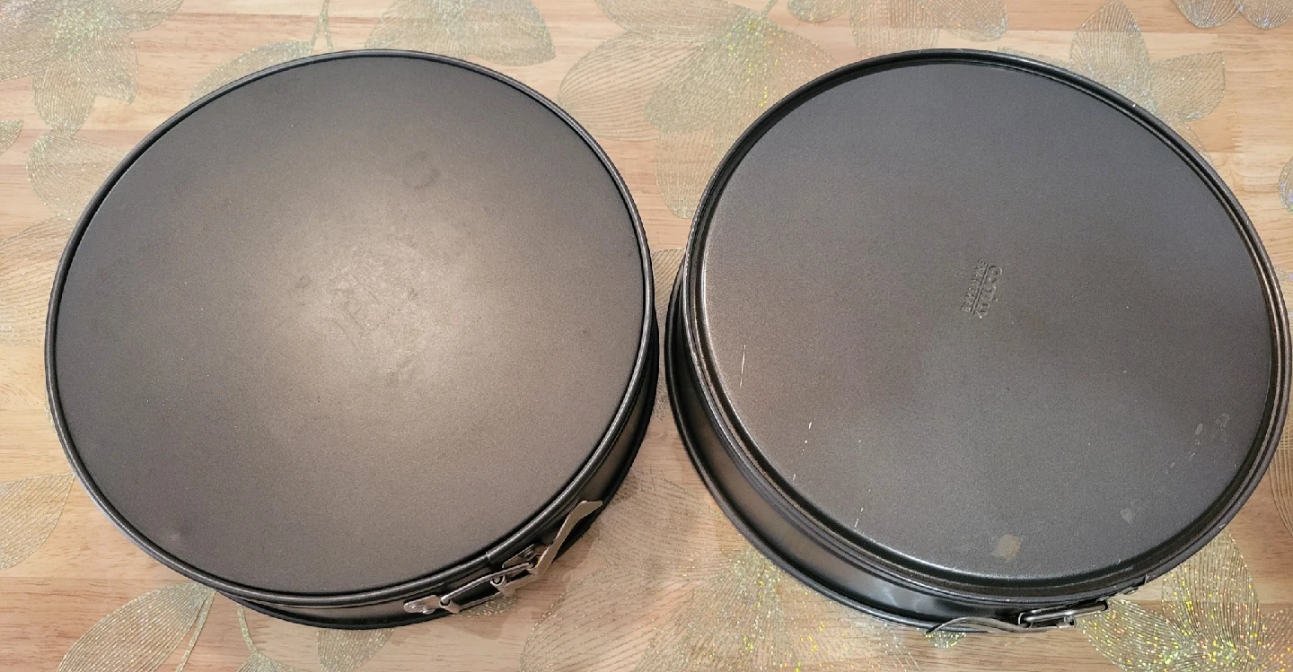92Selling a pair of springform cake pans! They're about 10 inches in diameter. Perfect for baking cheesecakes or other desserts that need to be easily removed from the pan. Price for ONE!