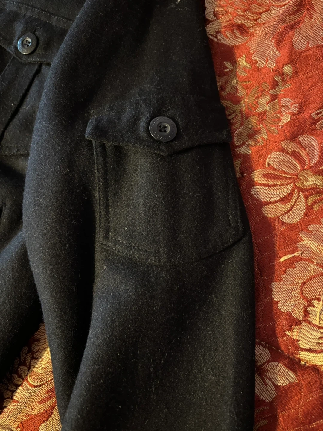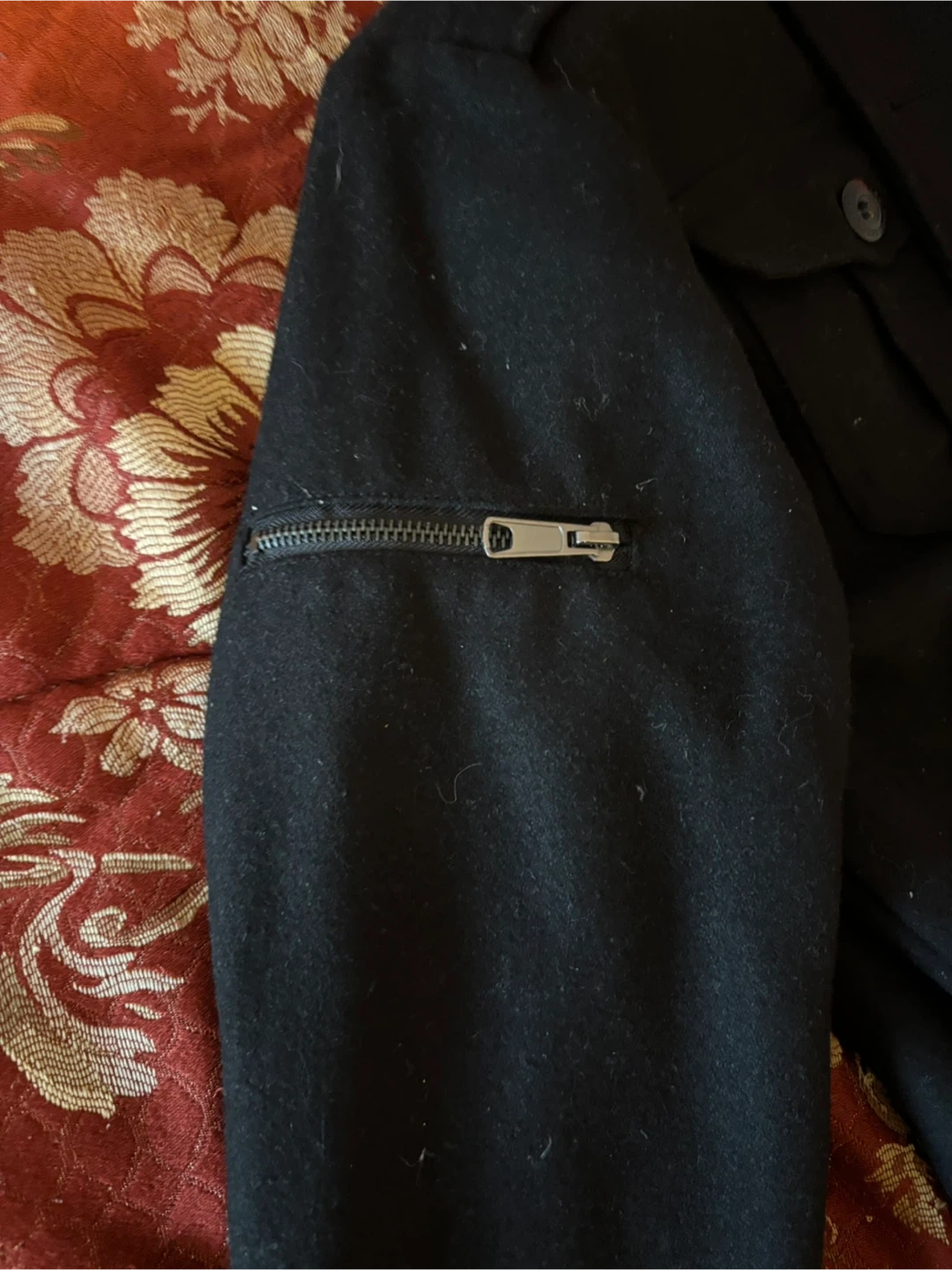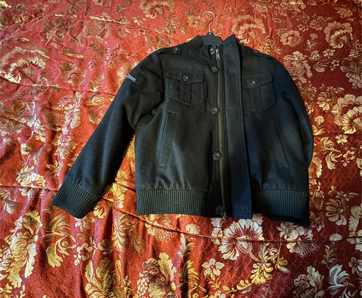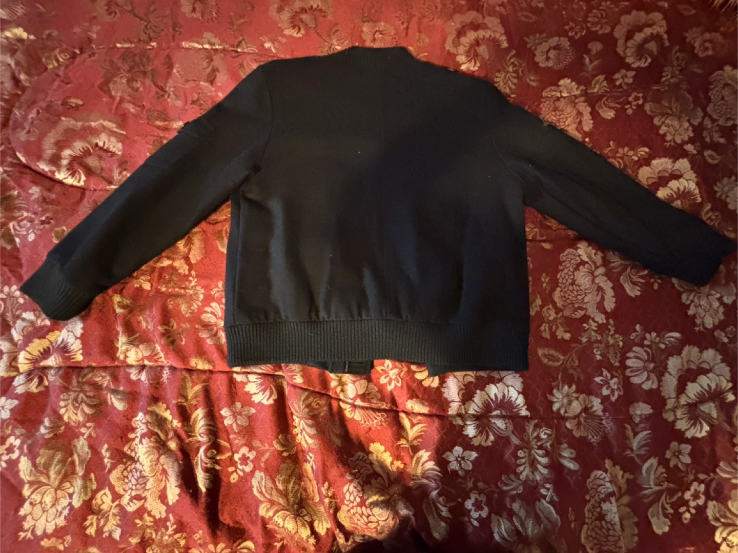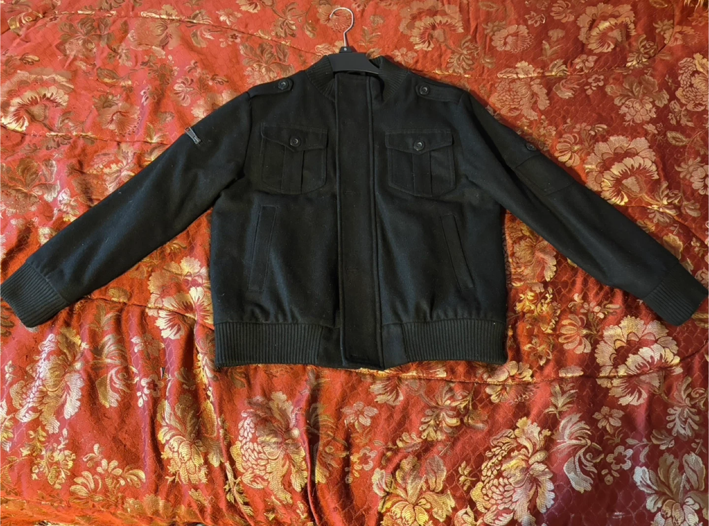Selling a black jacket from Two Below in size L. It's a stylish and comfortable jacket that's perfect for cooler weather. The jacket features a full zipper and button closure, along with several pockets for storage