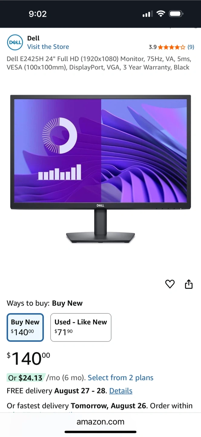Selling two new and unused Dell E2425H 24" Full HD monitors. The monitors feature a resolution of 1920x1080, a refresh rate of 75Hz, and a response time of 5ms. They also include DisplayPort and VGA connectivity. Retail for $140 each.