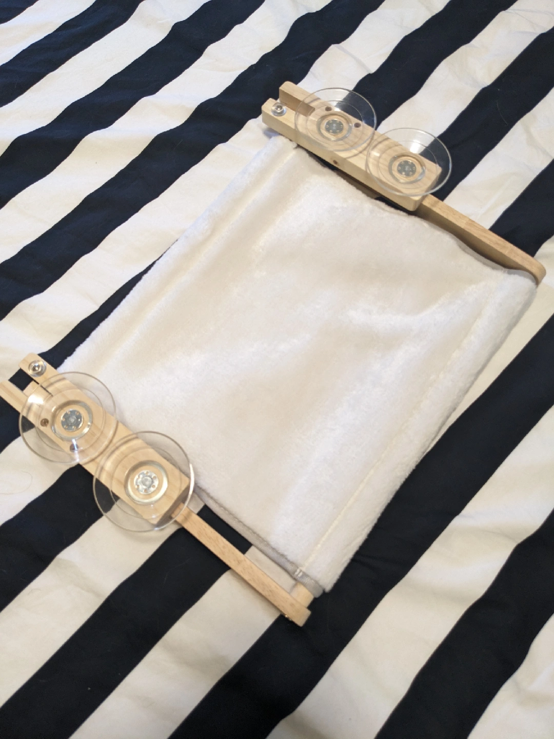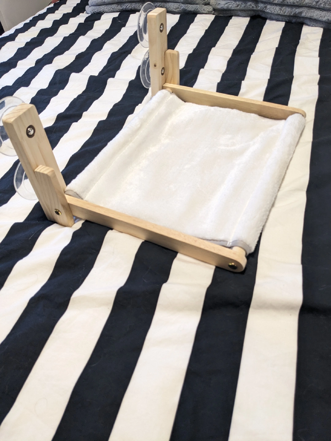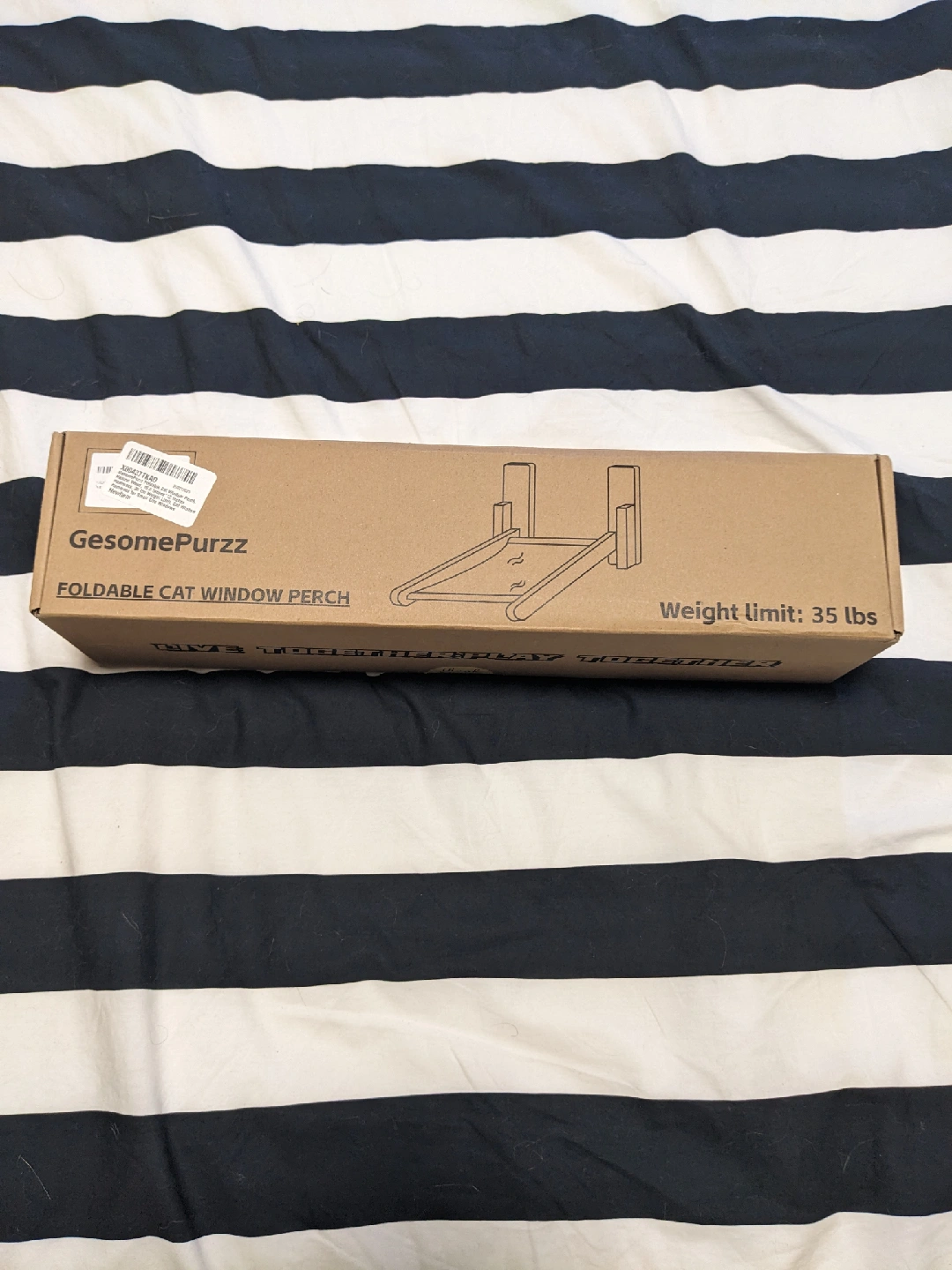 Selling two foldable cat window perches by GesomePurzz. One is in the original box and the second has been built, but never used. The perch is made of natural wood and has a weight limit of 35 lbs. Dimensions are approximately 16.5 inches x 12 inches.