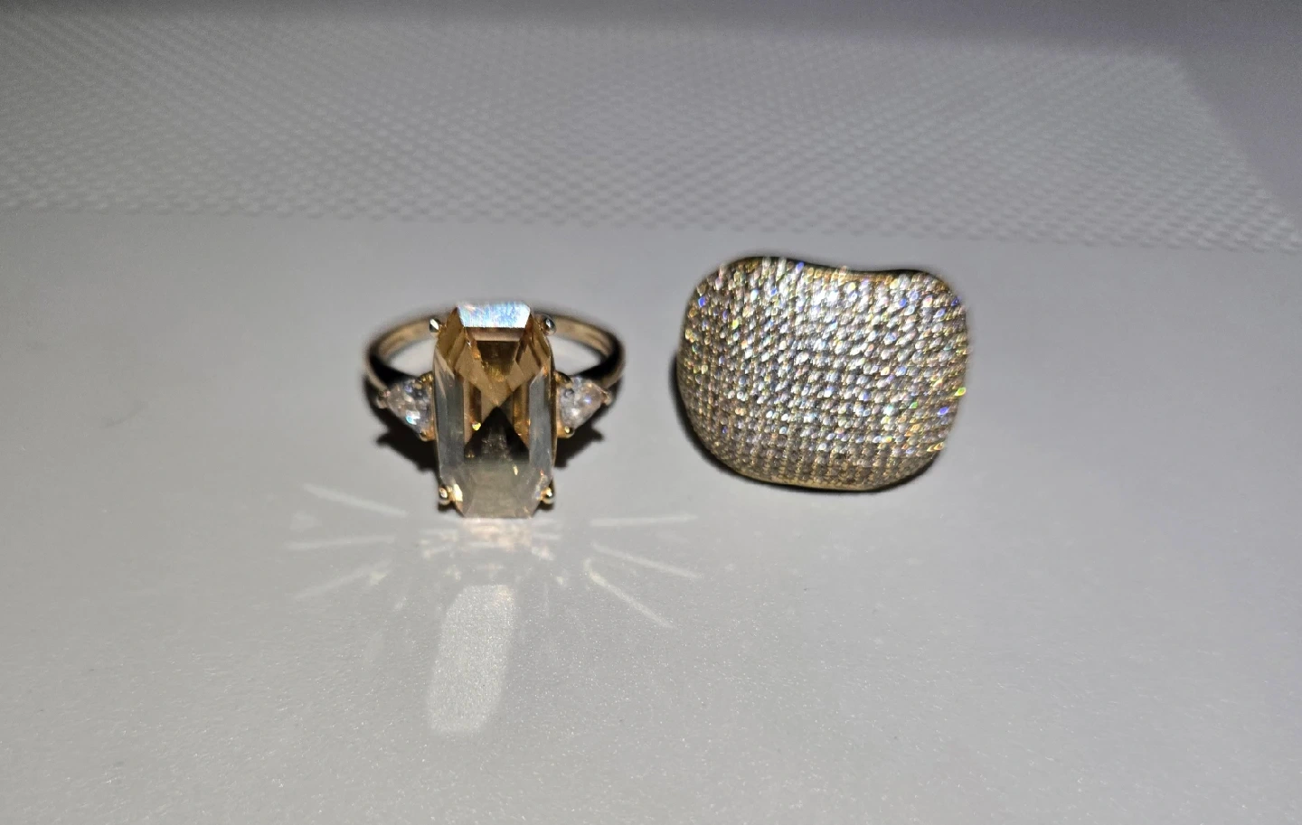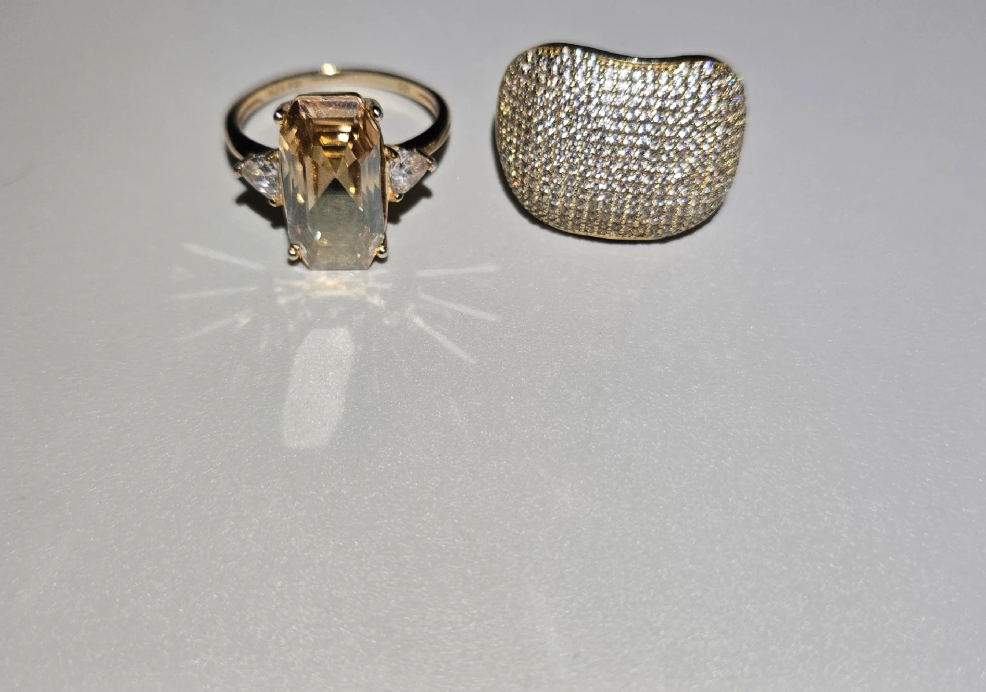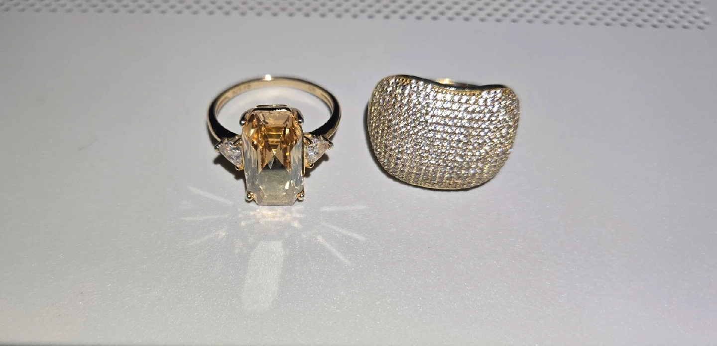 65Silver rings with gold plating and embedded diamonds on sale.