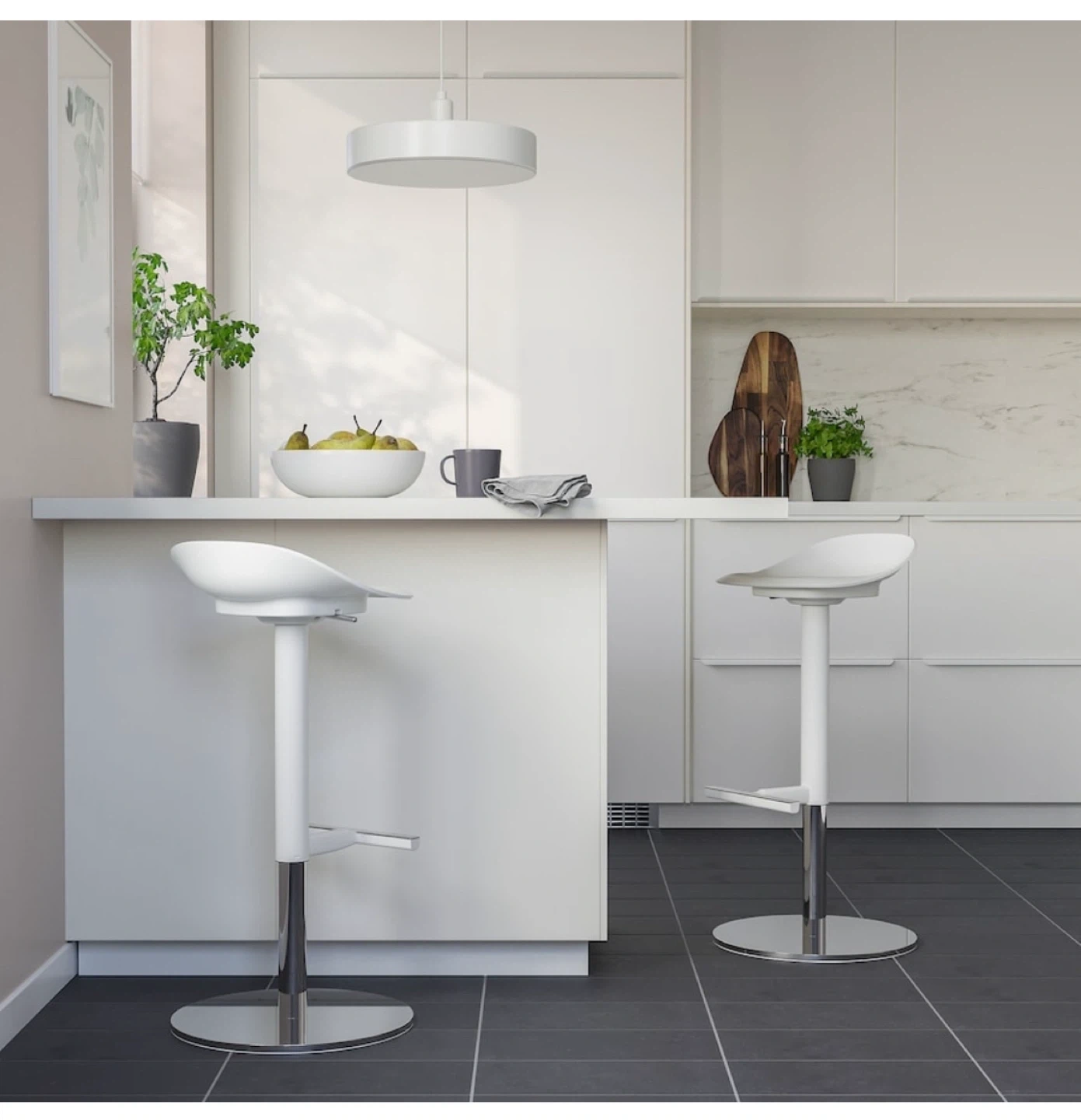 65Selling a sleek IKEA Franklin bar stool in white and chrome! This stool is perfect for adding a modern touch to your kitchen or bar area. It's in great condition and ready for a new home