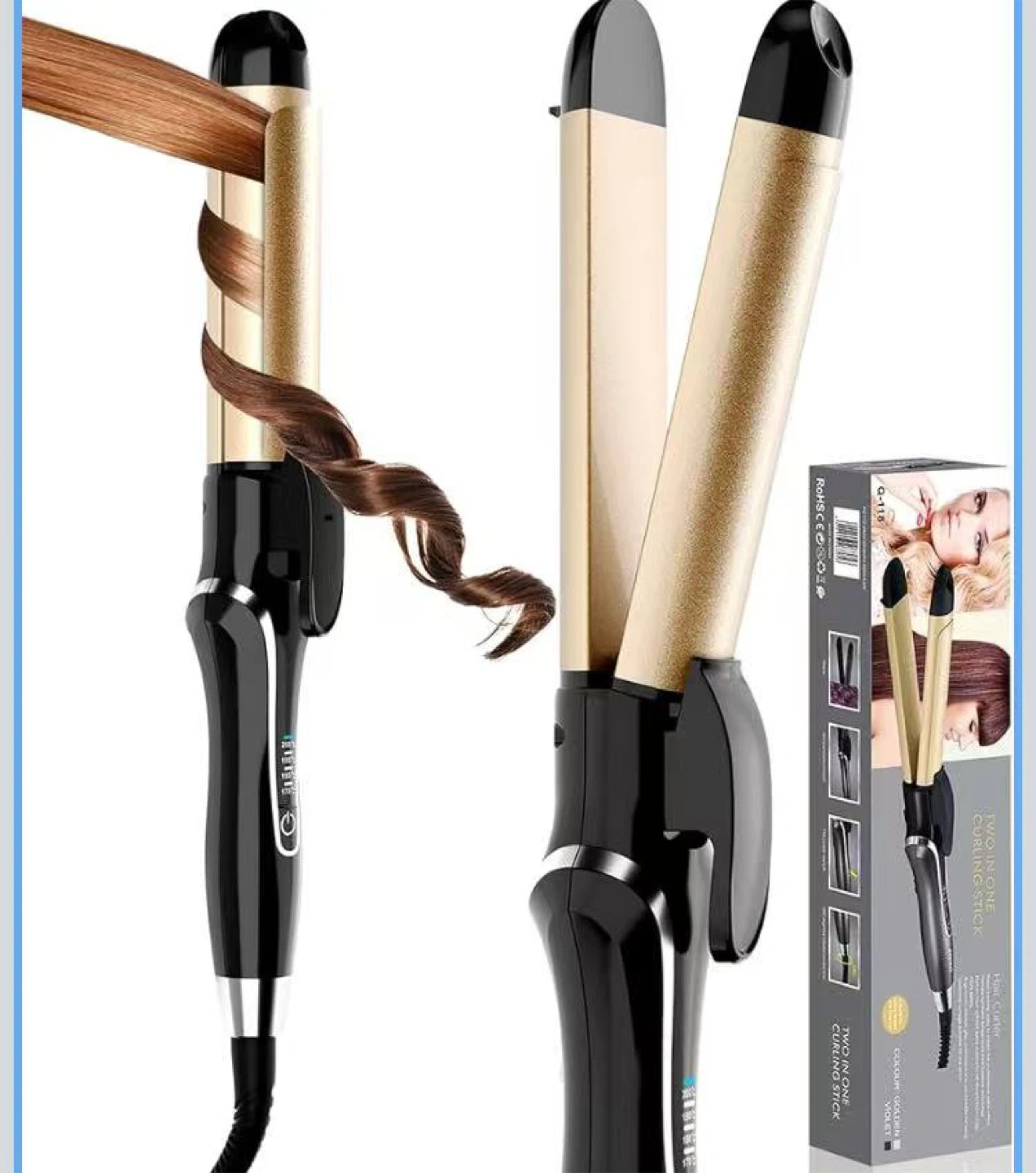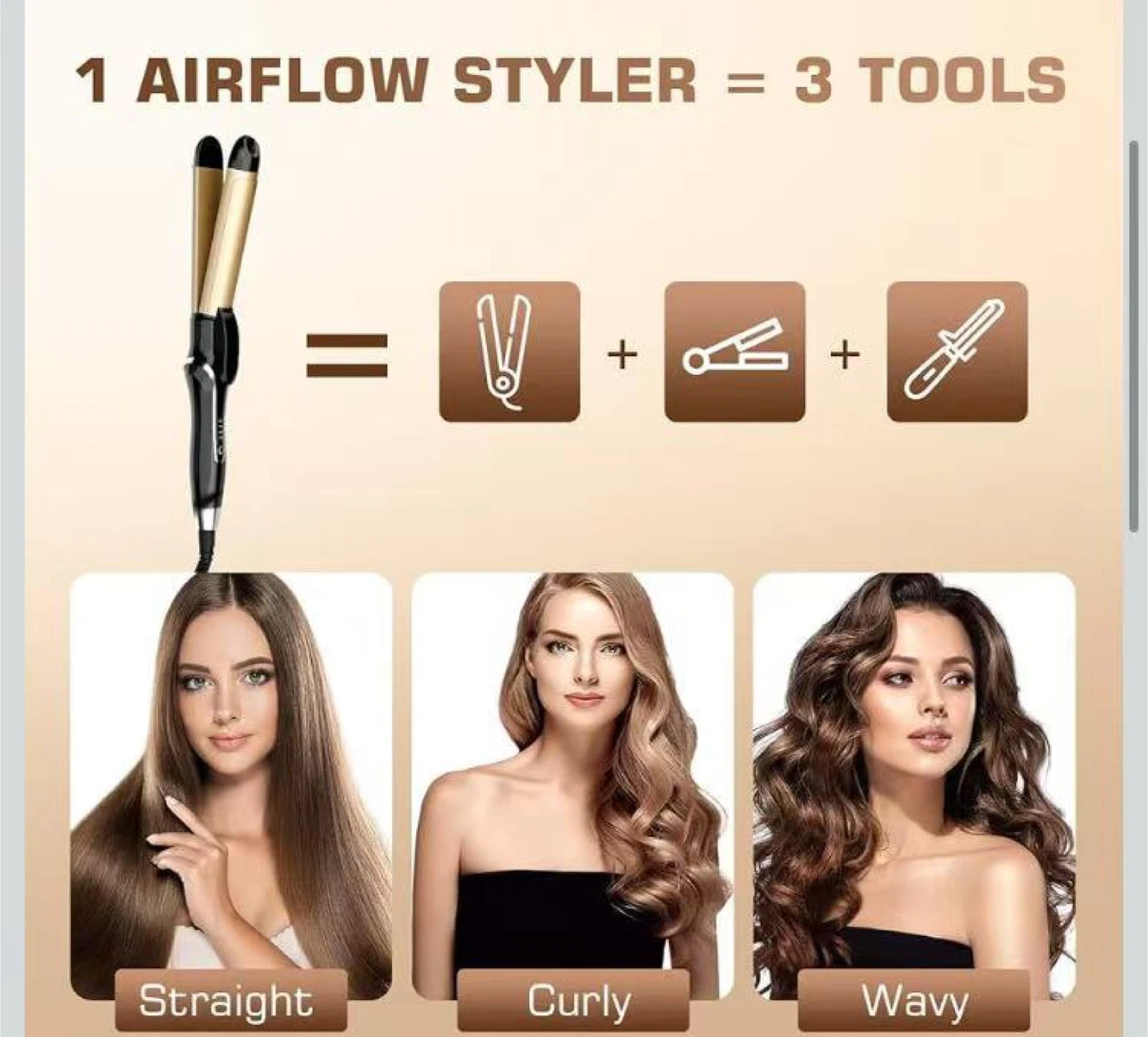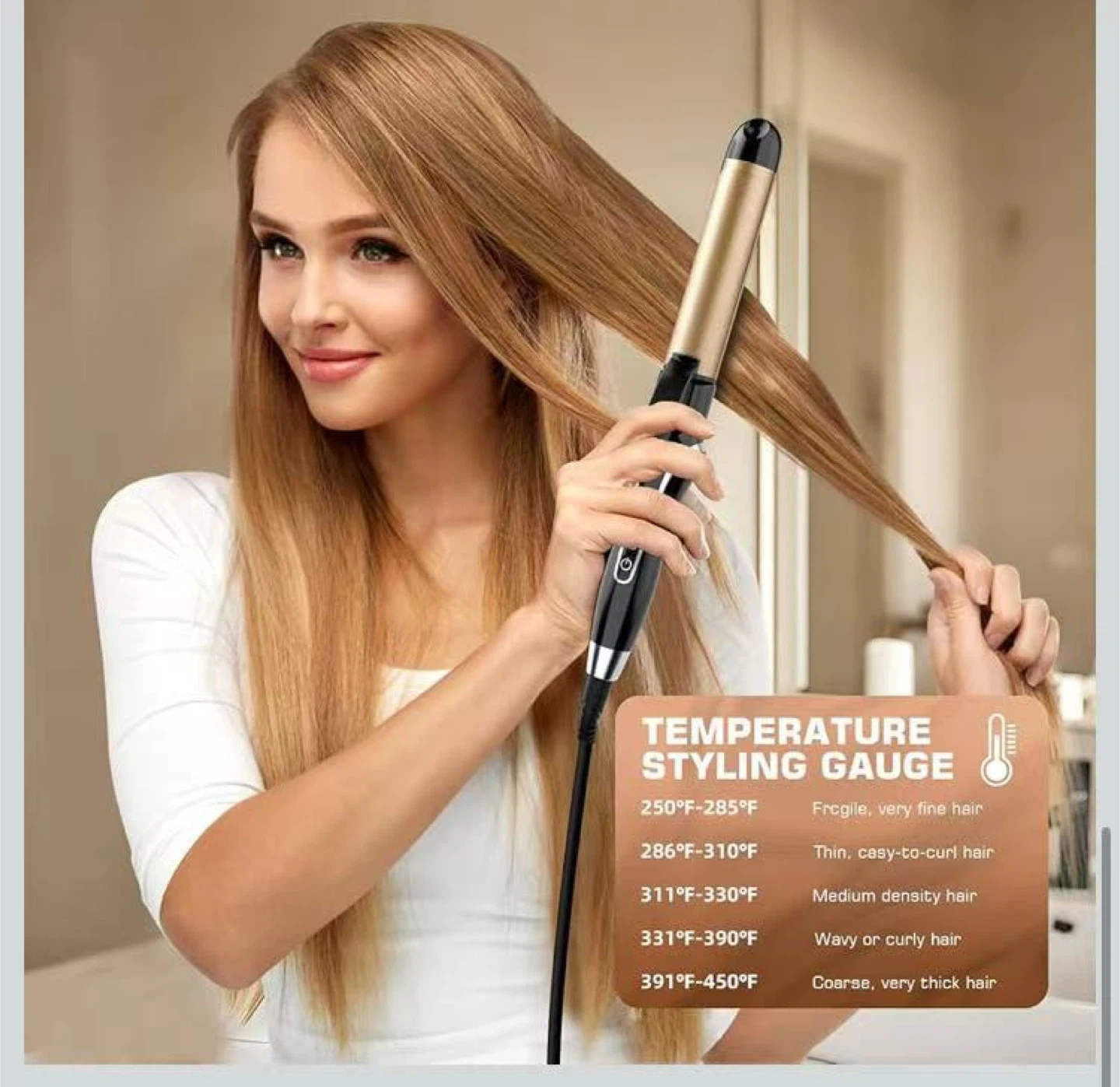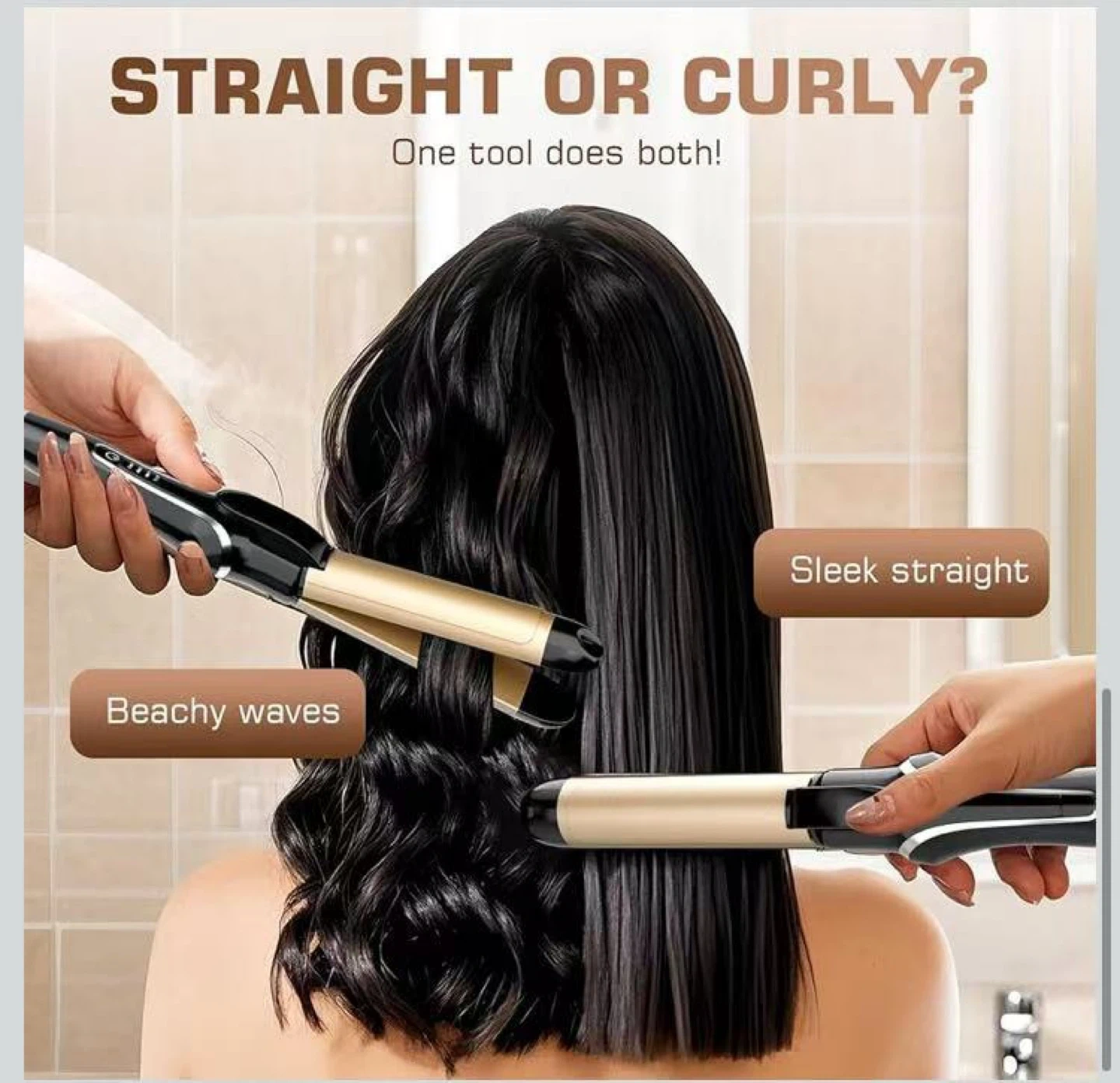 Curling Iron, 2 in 1 Hair Straightener and Curler, 1.25 Inch Ceramic Curling Wand with Adjustable Temperature, Dual Voltage for All Hair Types, Anti-Tangle for Long-Lasting Curls or Straight