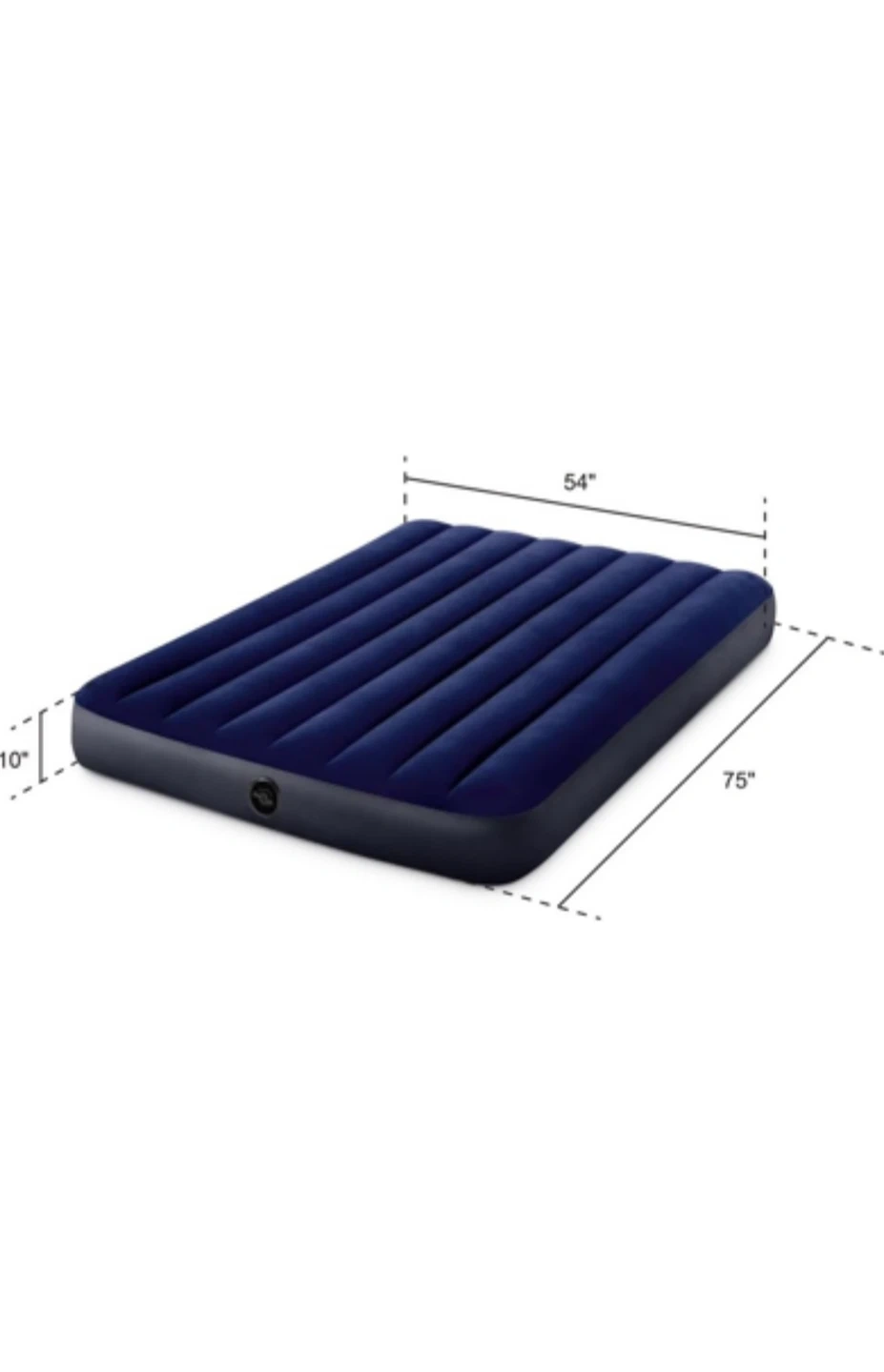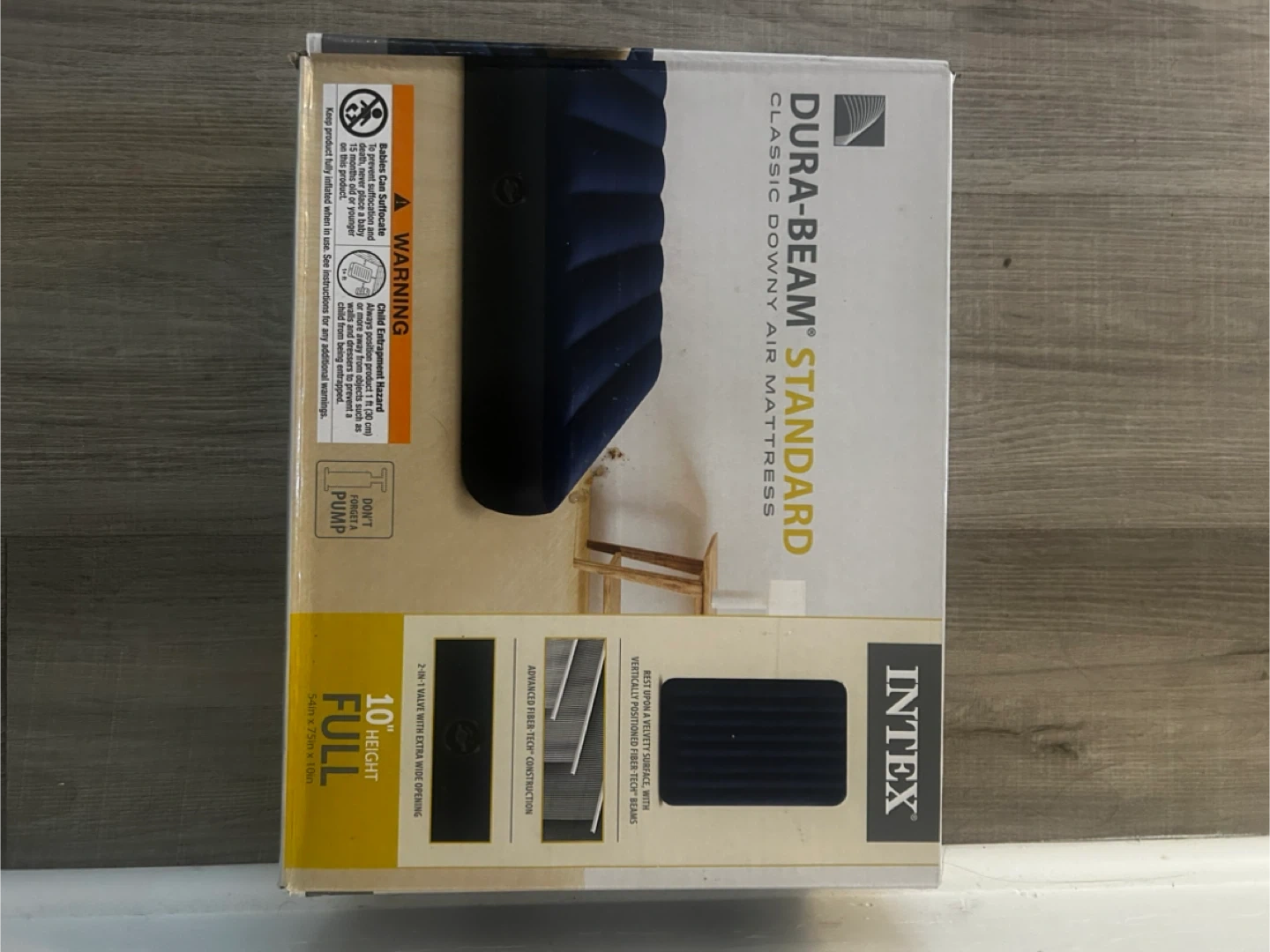 Selling 2 Intex Dura-Beam Standard Classic Downy Air Mattress in Full size! It has a 10-inch height and measures 54in x 75in x 10in. Features include a velvety surface and advanced Fiber-Tech construction for a comfortable night's sleep. It also has a 2-in-1 valve. Will Sell an electric pump. Only used in me over one weekend for family. Literally brand new