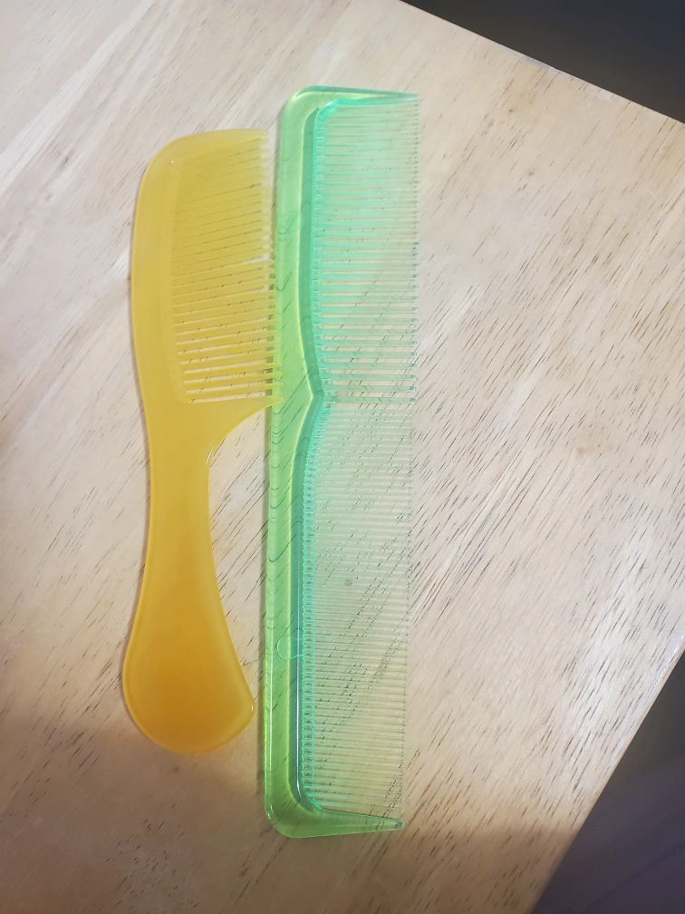 Set of two plastic combs. One yellow, one green. Used condition. Great for travel or everyday use.