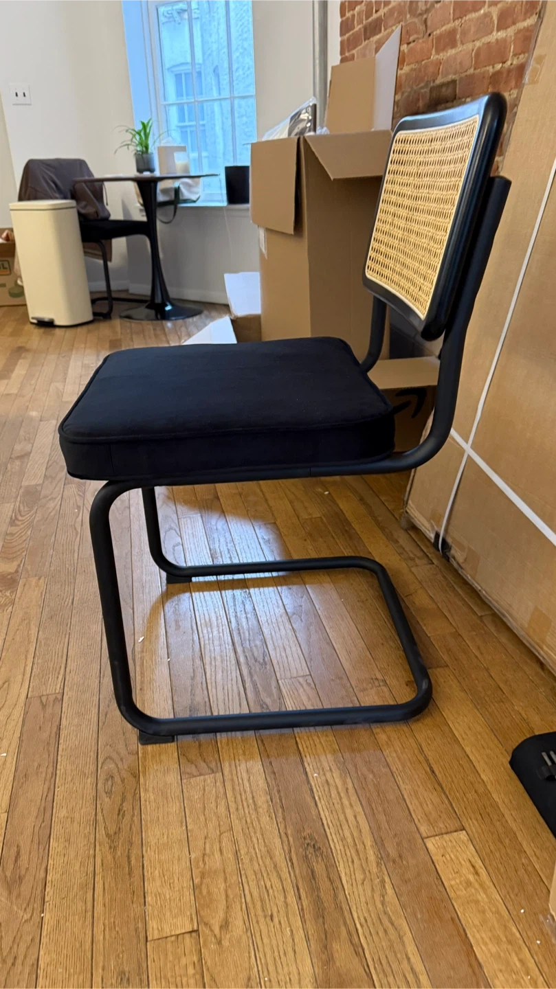 CB2 Gray Velvet Chair with Gold Metal Frame