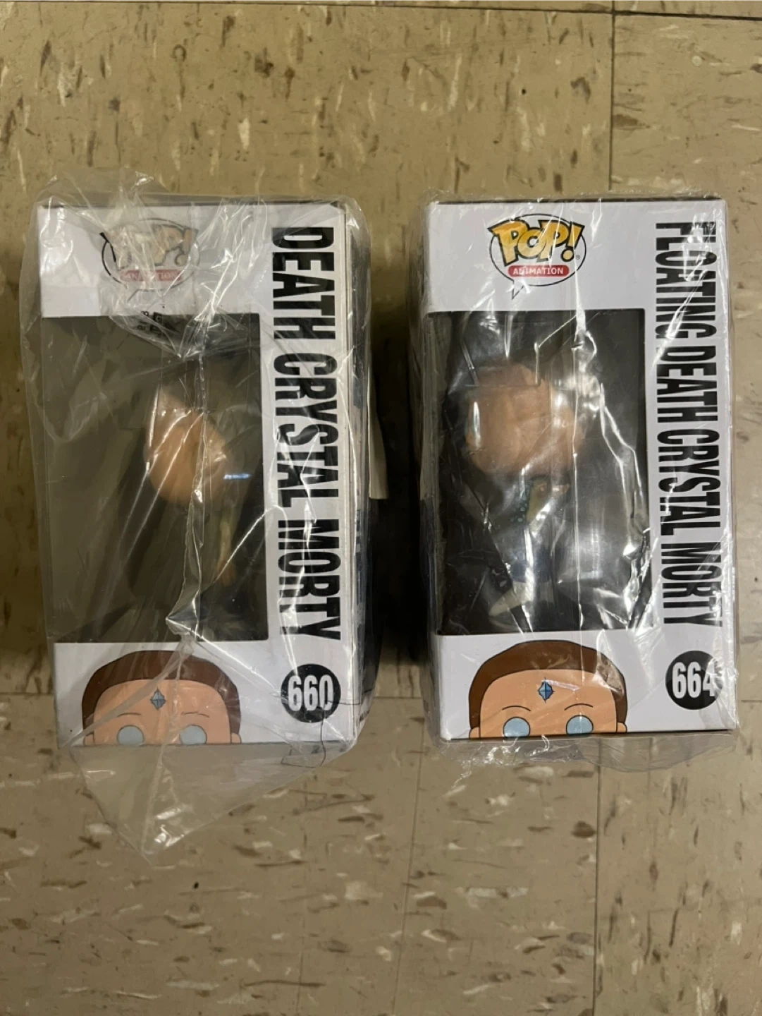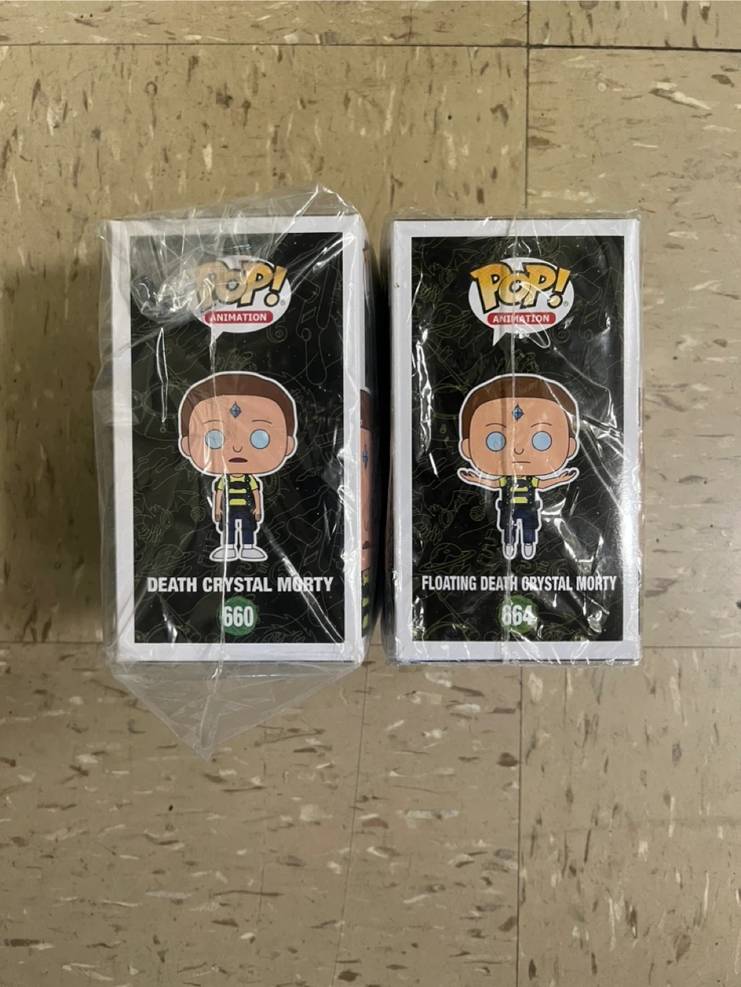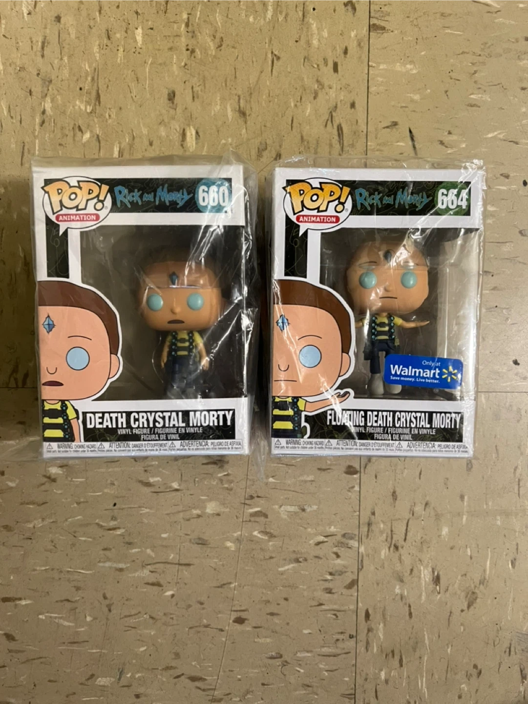 172TWO Rick and Morty “Morty” Funkos one Death Crystal Morty 660 and one Floating Death Crystal Morty 664 The 660 seems to be faded a bit If you only want one, just message me