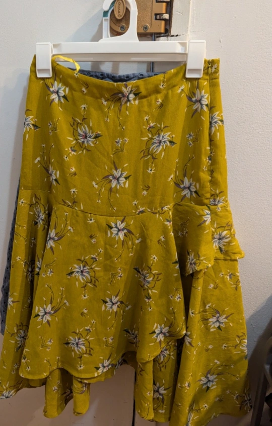 155A blue eyelet skirt (Loft size 2) and a yellow floral skirt (Nasty Gal size 4). Both are in good shape but maybe needs an ironing.