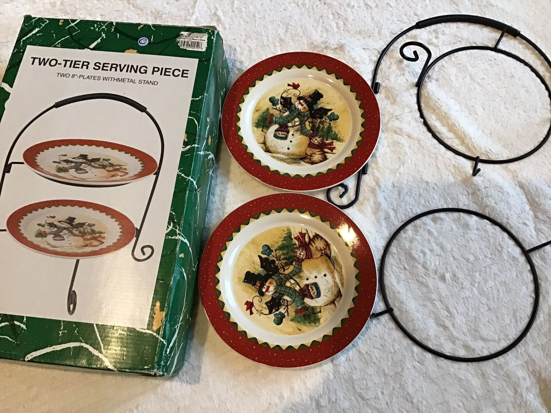 23Two 8 "plates with metal stand Just use once Excellent condition