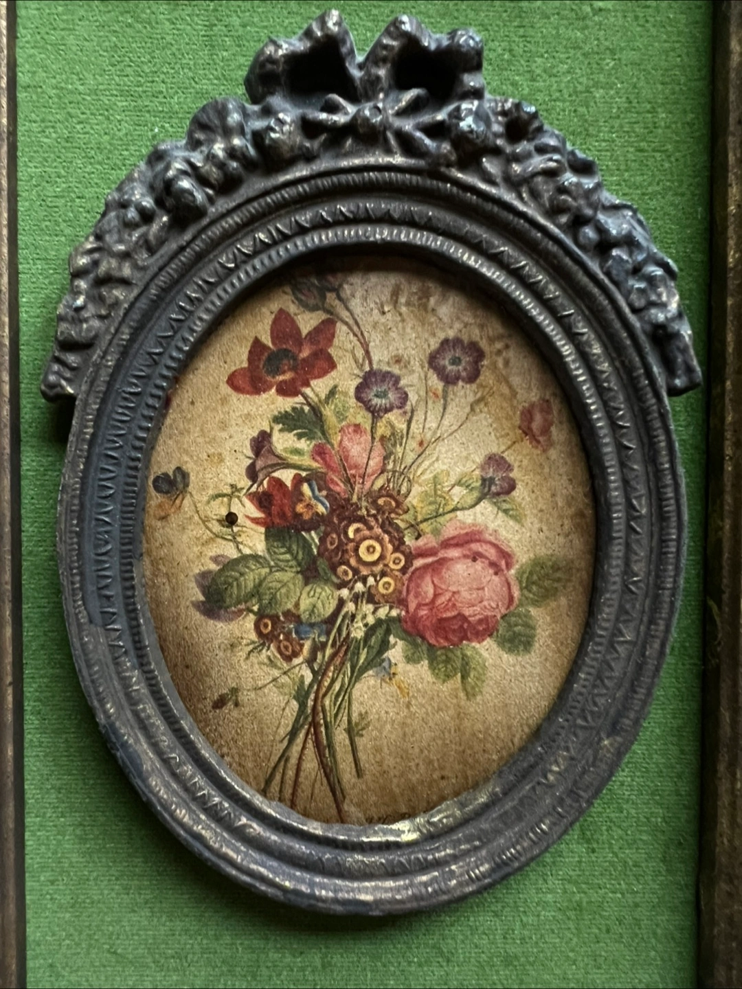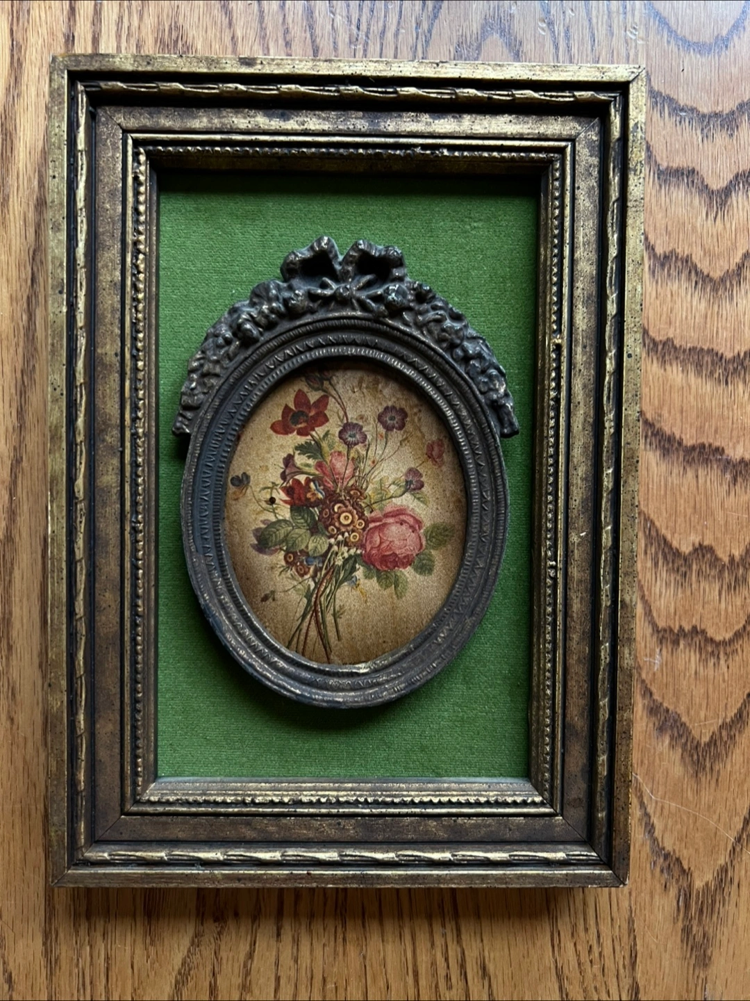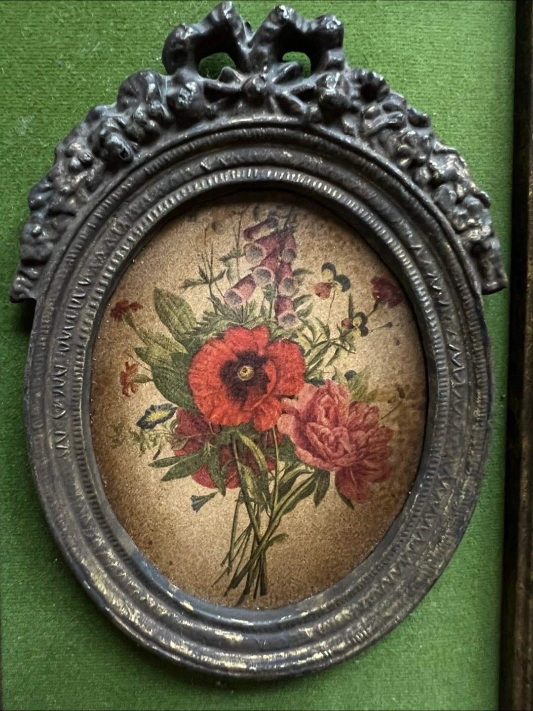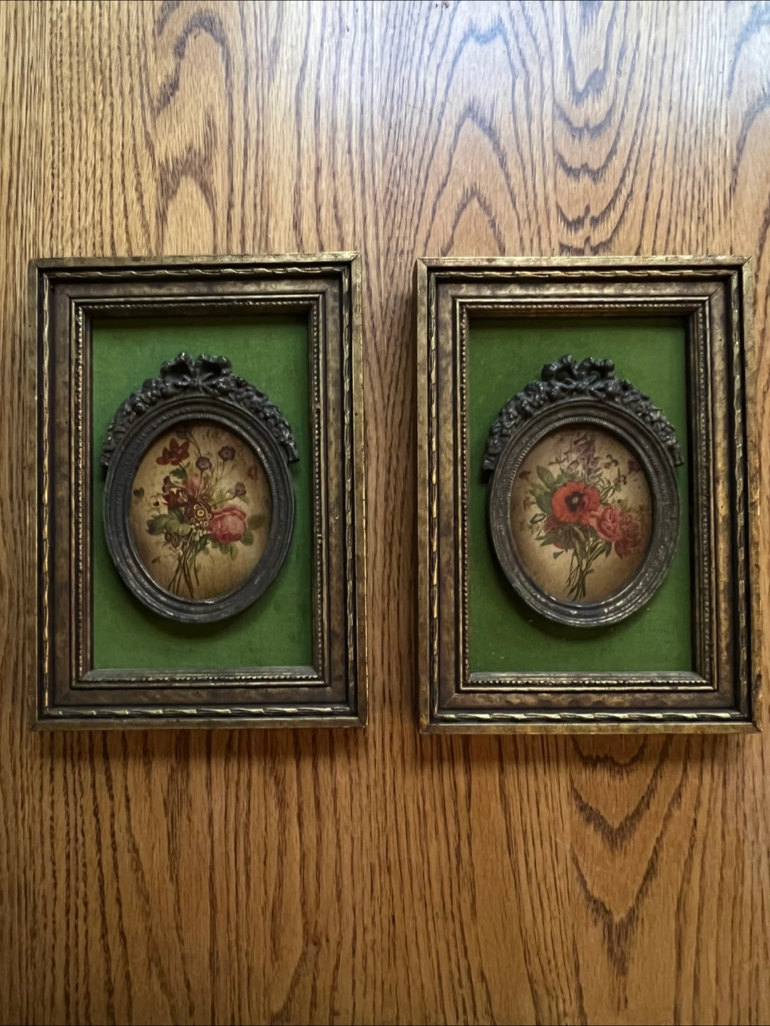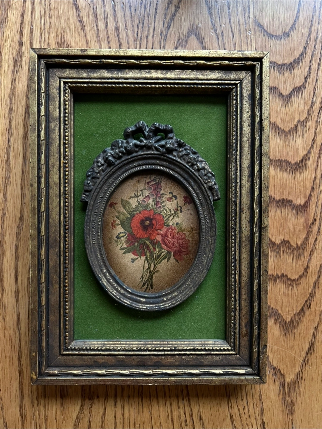Pair of Vintage Framed Botanical Prints. A beautiful set of two framed prints after Jean Louis Prévost, featuring his famous “June Bouquet” illustration with red poppy, foxgloves, and pink peony. Each piece is presented in a matching antique-style frame, making them perfect for classic, vintage, or botanical-inspired décor. Timeless and elegant, they bring a touch of nature and charm to any room. Frame is 8.5 in long and 6 in width. The framed circle is 5 in long and 3.5 in width.