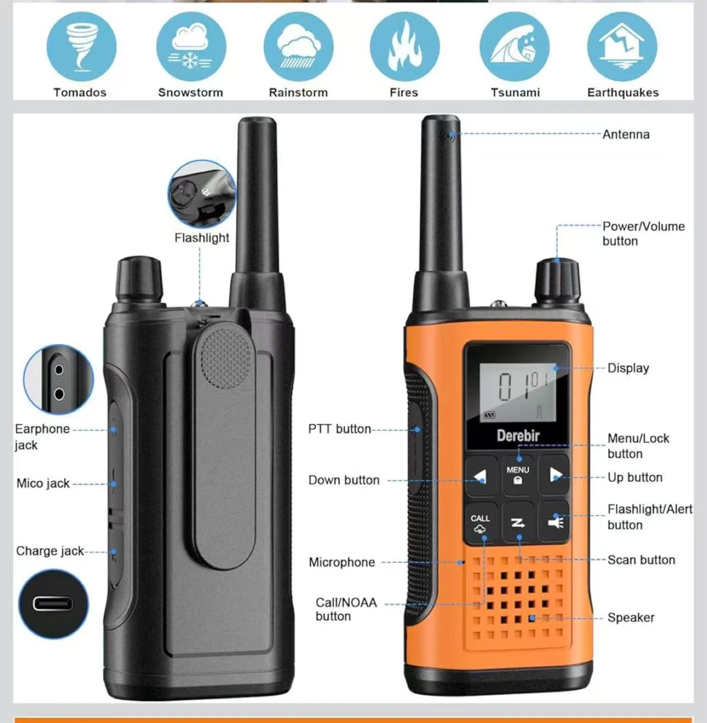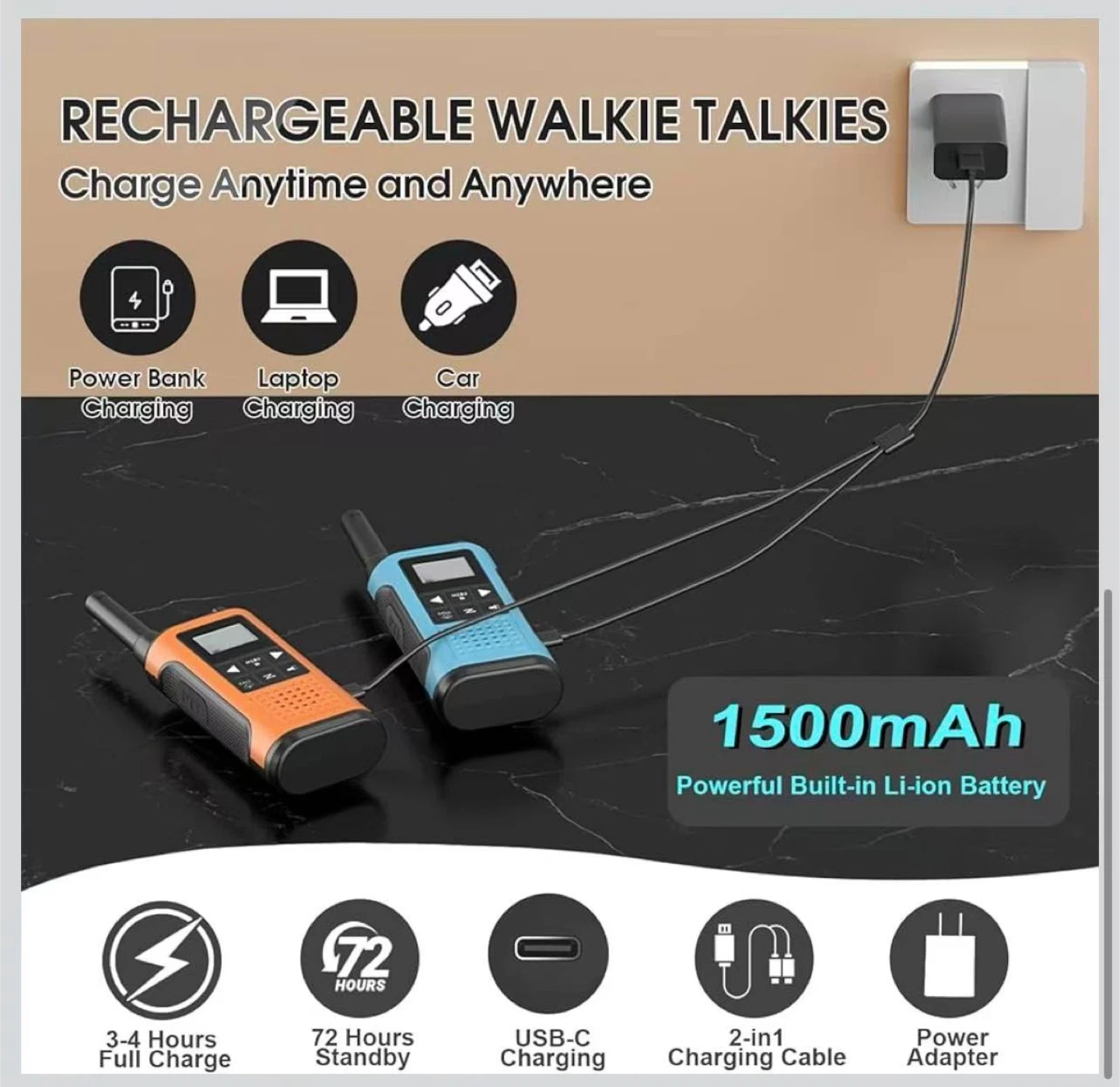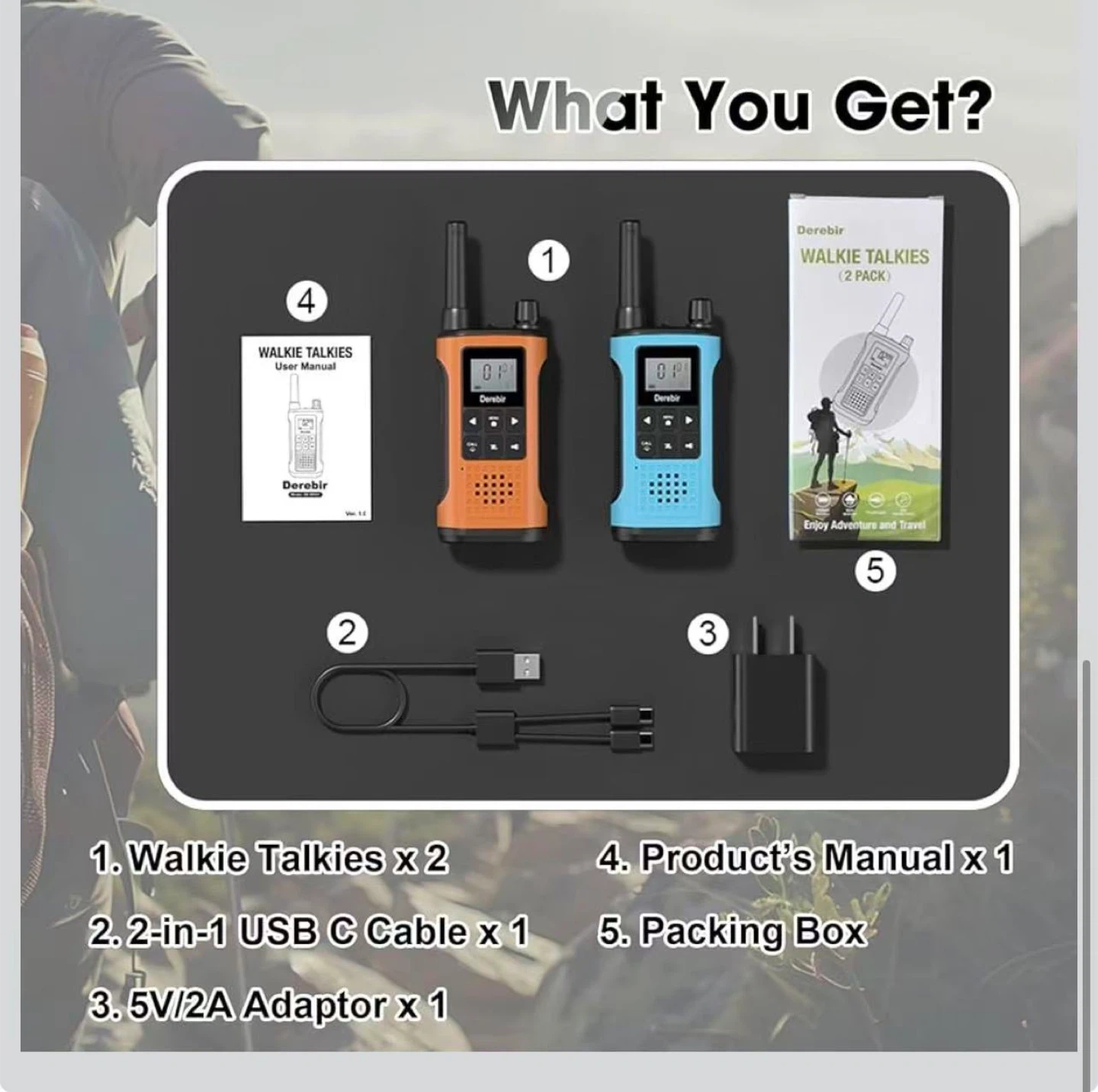 60Walkie Talkies Long Range for Adults-2 Pack Rechargeable Walkie Talkies 22 FRS Channels 2-Way Radios with NOAA Weather Alert,VOX,Flashlight and 1500mAh Li-ion Battery for Family Camping Hiking