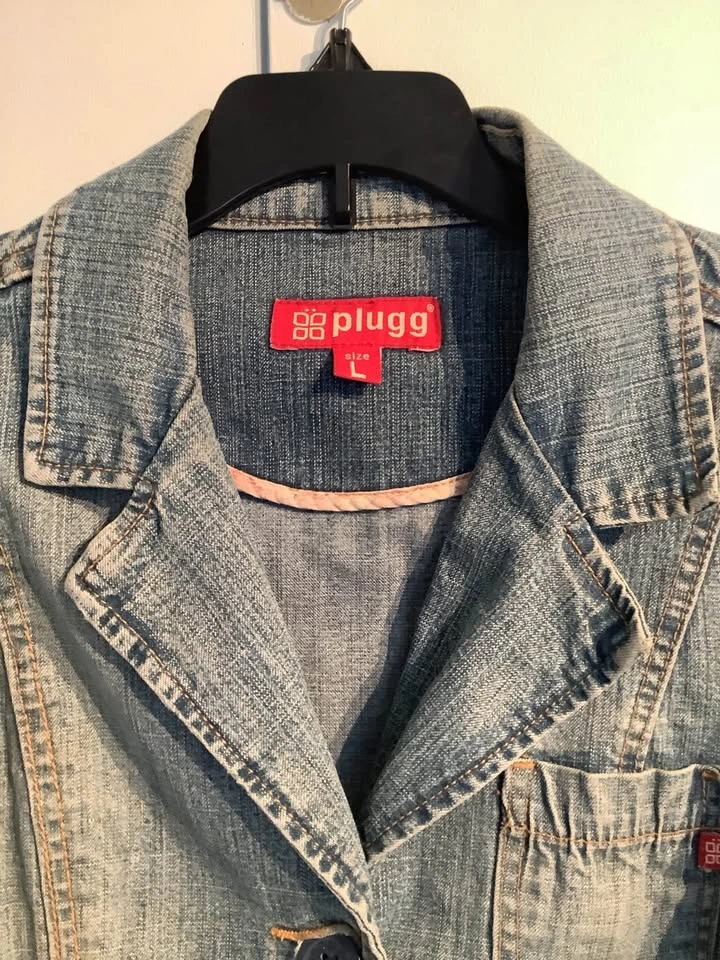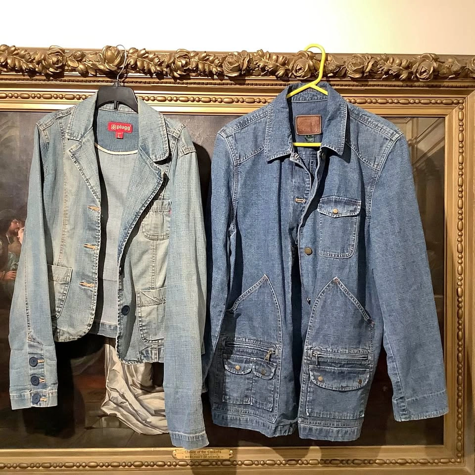 pair of women’s denim jean jackets both size large: 1. VTG 90s Ralph Lauren Jeans Co Denim Barn Chore Coat Jacket Women’s Large (jacket on right) - $55 2. Plugg Women's Classic Distressed Denim Jean Jacket - Sz Large - $15