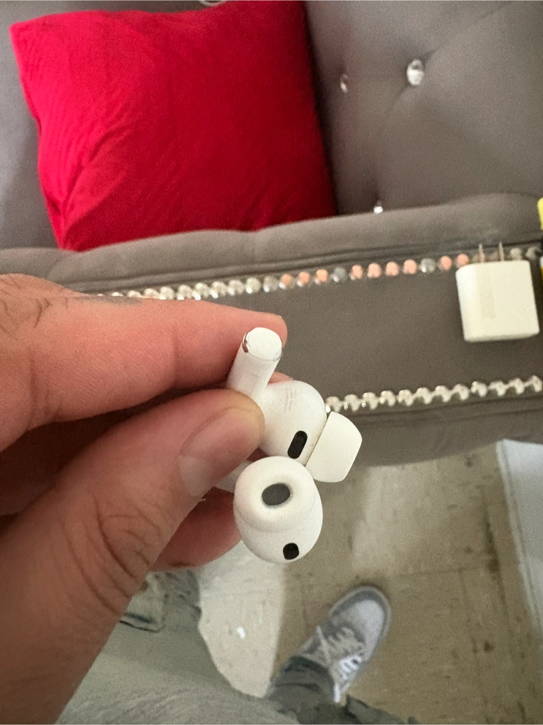 These are Apple AirPods Pro (2nd Generation). They're white and come with silicone ear tips for a comfortable fit. These earbuds are designed for an immersive audio experience. They're great for listening to music, podcasts, or taking calls on the go! I don’t have the case for it I just lost it